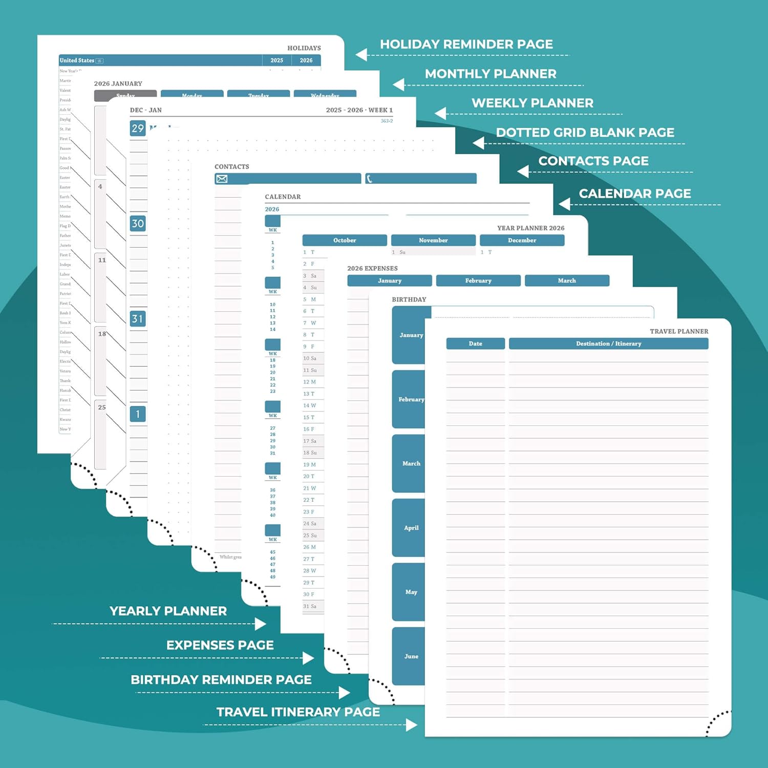 - Thoughtful Design: The monthly tabs on the side of the agendas planner can easy locate the current date; the tear off design and bookmark rope make it easy to flip through the medium planner. The last page of the 2026 college planner has an expanded inner pocket that has a small space for storage of cards
