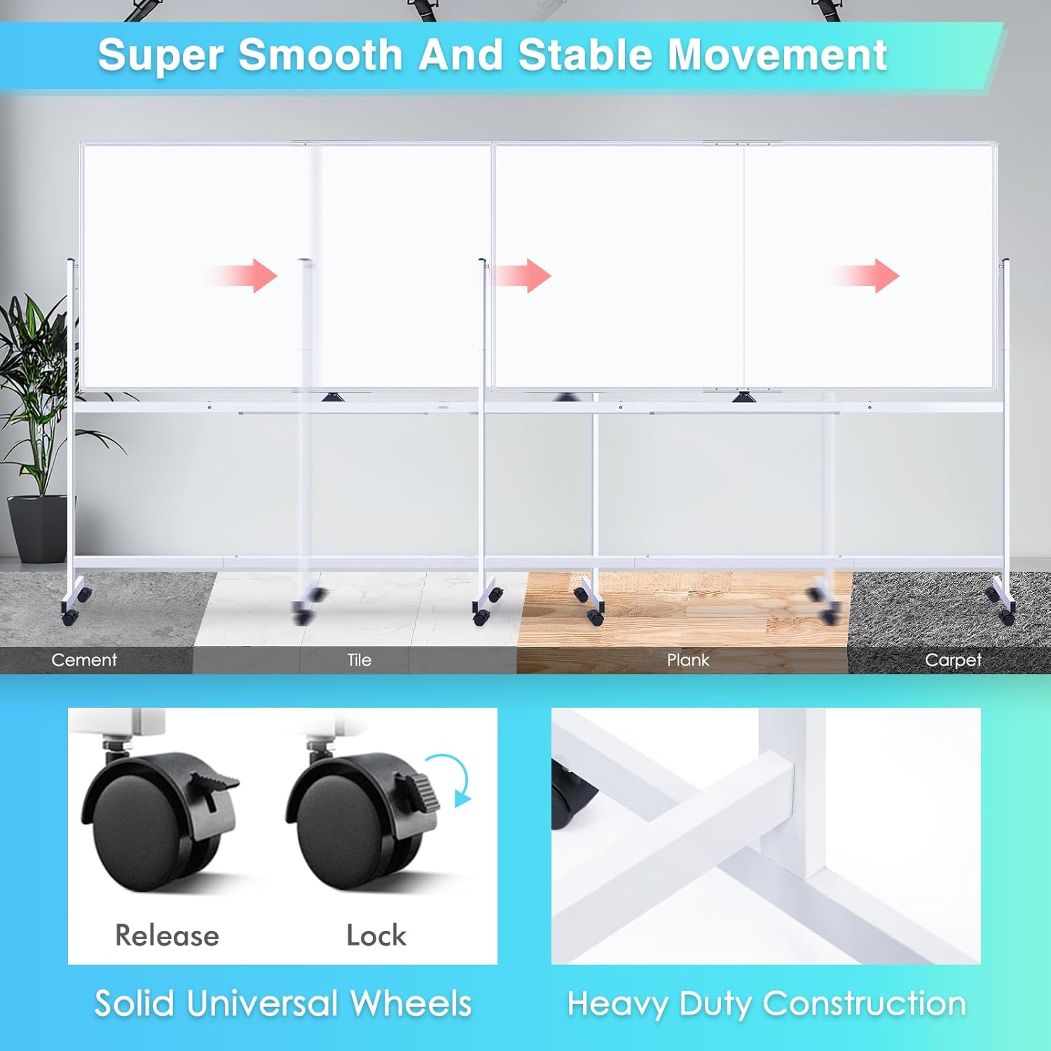 maxtek Rolling Whiteboard, 96x48 Large Double-Sided White Board Dry Erase on Wheels, Giant Magnetic White Board Standing for Office, School, Home Office, Homeschool