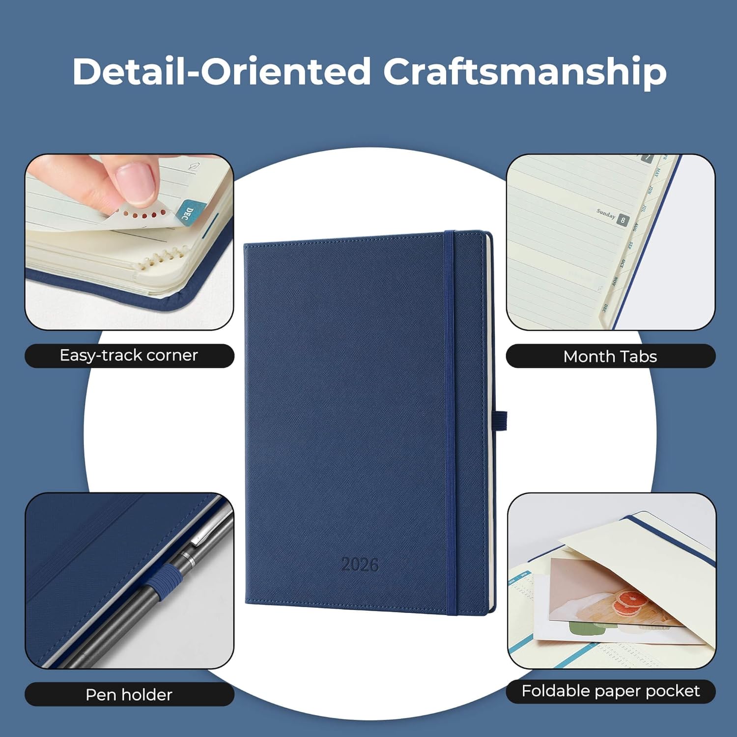 - Professional Grade Material for Your Daily Planner: Crafted with FSC 100GSM thick paper, this 2026 planner ensures good writing with markers while gentle on your eyes through its ivory white pages. The leather soft cover and lay flat binding make it a calendar planner companion for busy professionals, students, and families