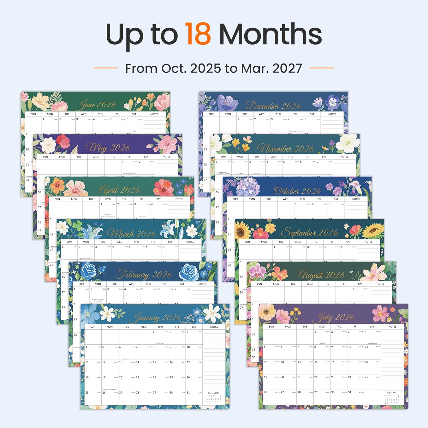 SUNEE Desk Calendar 2025-2026 - 18 Month Calendar Oct 2025 - Mar 2027, 17" x 12" Desktop Calendar with Notes, for Planning, Organizing in Family, School or Office - Colorful Floral 2026 Calendar