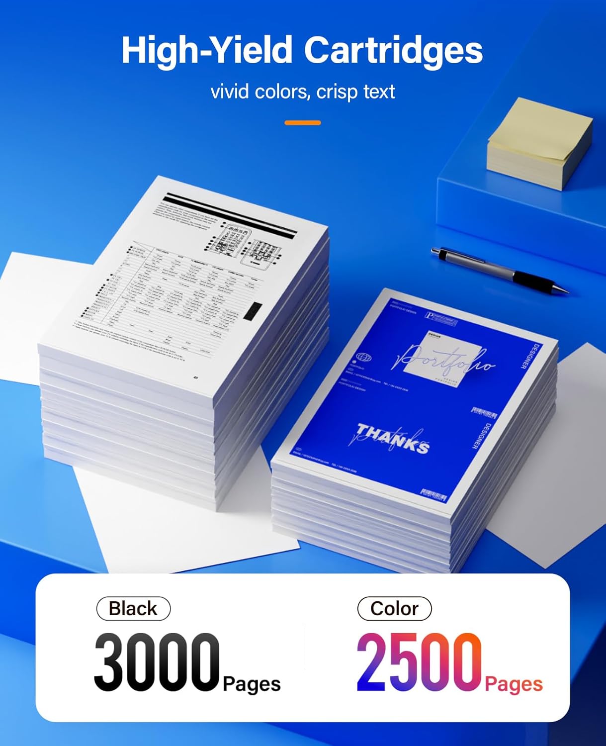 - High Page Yield: 3,000 pages for Black and 2,500 pages for Color toner cartridge (Letter/A4, at 5% coverage)