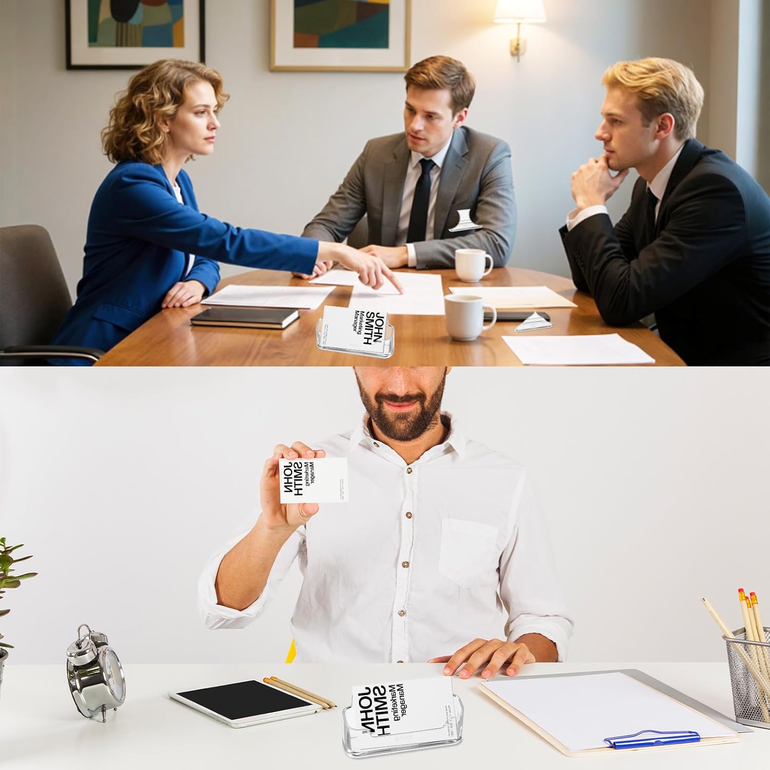 - 【Stable Card Holder】The acrylic card holder bottom is stable to prevent tipping, ensuring stability on the desk, reception desk or booth. It can directly prevent shaking or sliding on the table.