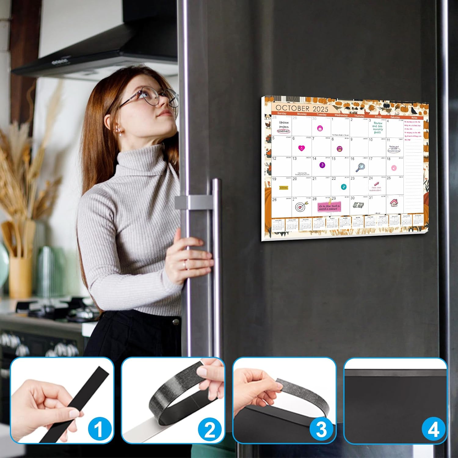 - ✨【Large Magnetic Fridge Calendar】Larger, logical daily blocks provide you with plenty of space to organize your busy life, Clearly display important events such as appointments,deadlines, birthdays, and US holidays on each page. Comes with 3 planning stickers, a magnetic strip and a lanyard so you can stick the calendar on your refrigerator or hang it on the wall to personalize your schedule.