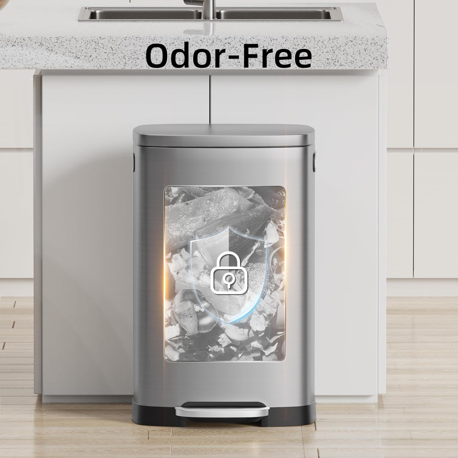 - 🚮 Large Capacity & Odor Lock Technology: 50L (13 Gallon) extra-large capacity reduces frequent trash runs, perfect for busy kitchens. Sealed lid with odor-blocking design traps smells, keeping your space fresh and clean.