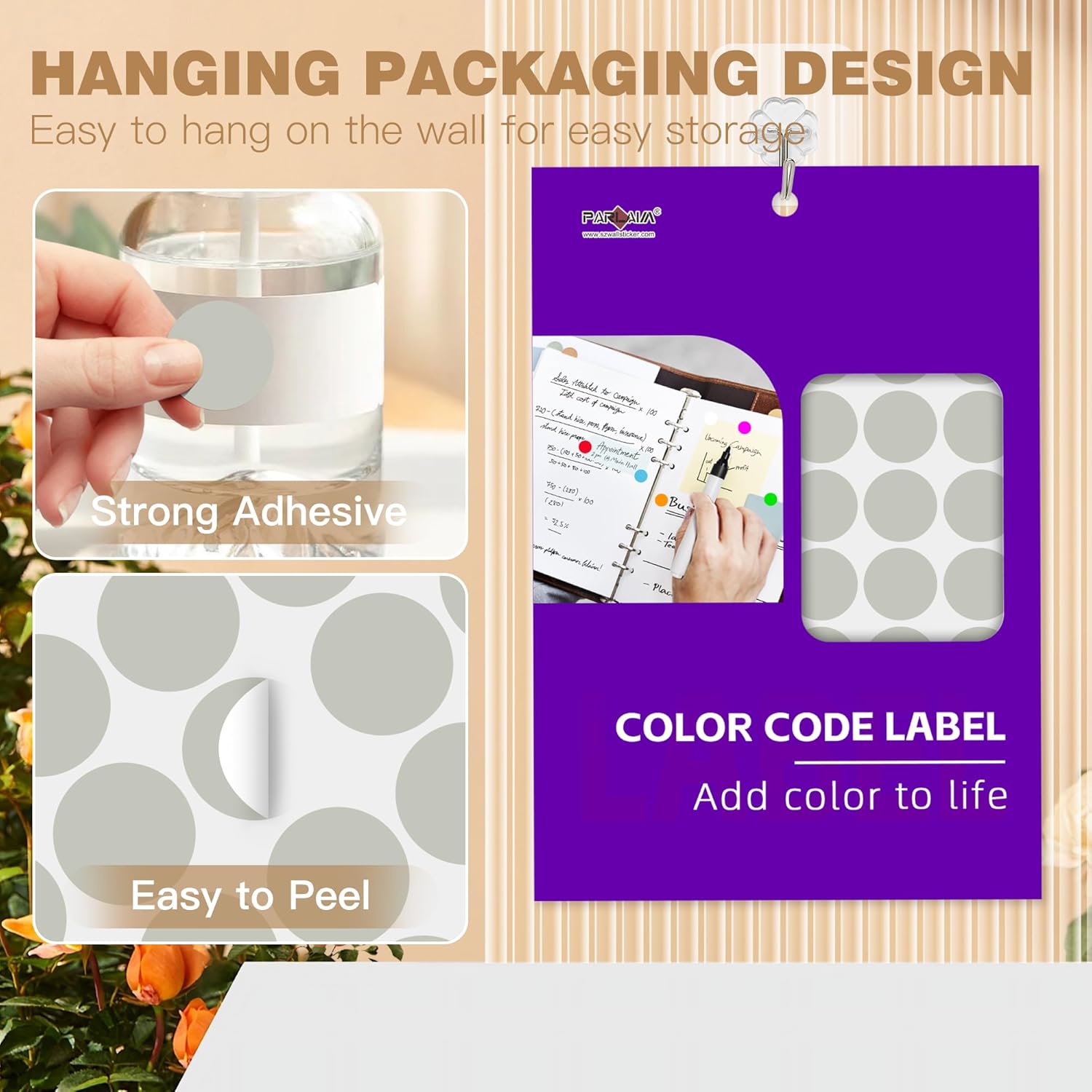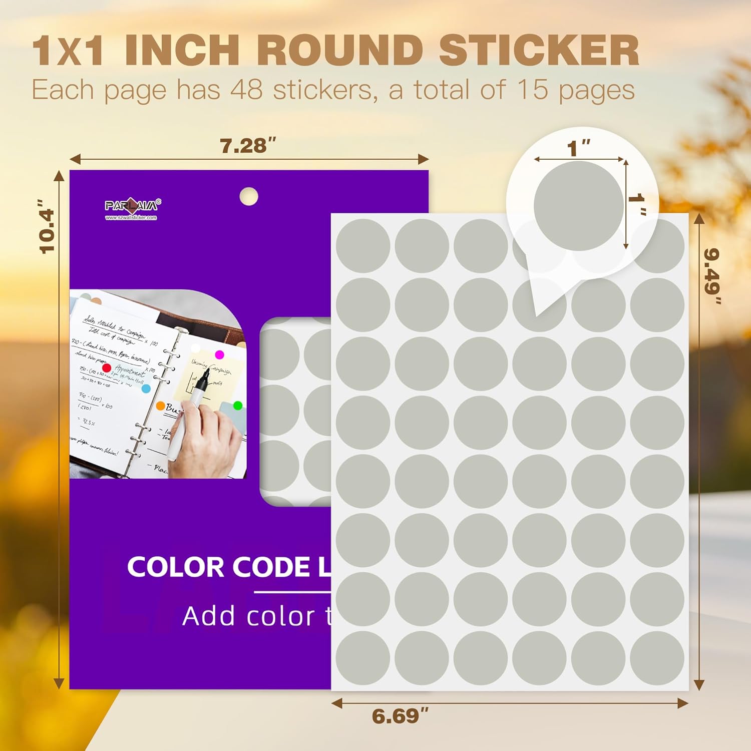 PARLAIM 1 inch Round Gray Dot Sticker,720PCS Permanent Adhesive Color Code Circle Sticker Labels for Office Classroom Garage Sale