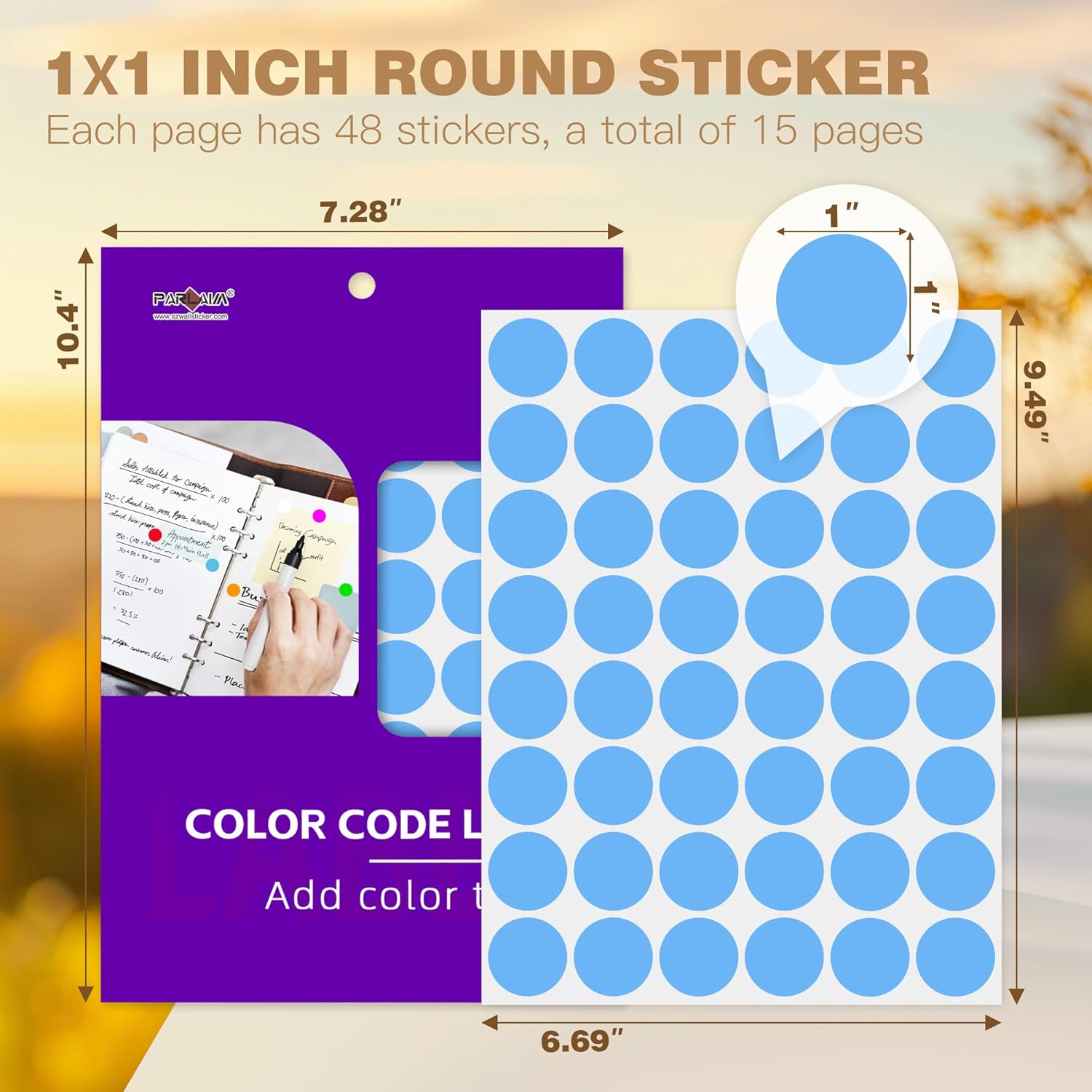 PARLAIM 1 inch Round Sky-Blue Dot Sticker,720PCS Permanent Adhesive Color Code Circle Sticker Labels for Office Classroom Garage Sale