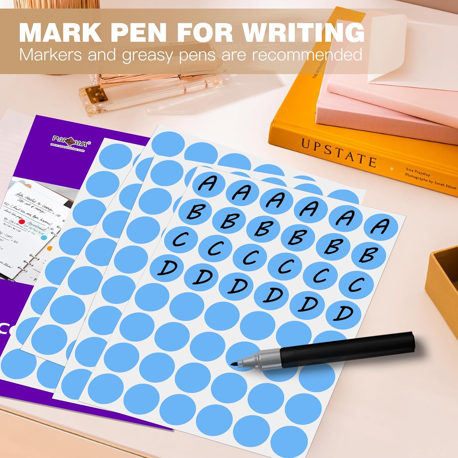 - Cardboard package: 15 sheets 1 inch sky-blue dot stickers, total 720 pcs round color-code circle label, package size 266mm*185mm