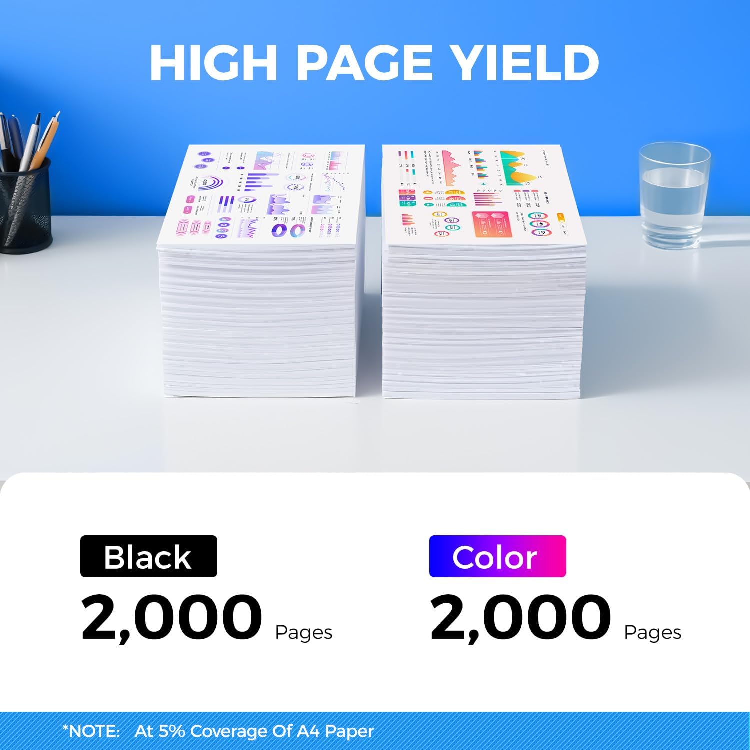 - High-Yield: up to 2,000 pages per Dell 1320 Black Color Toner Cartridge (Total 8,000 pages, 5% coverage).