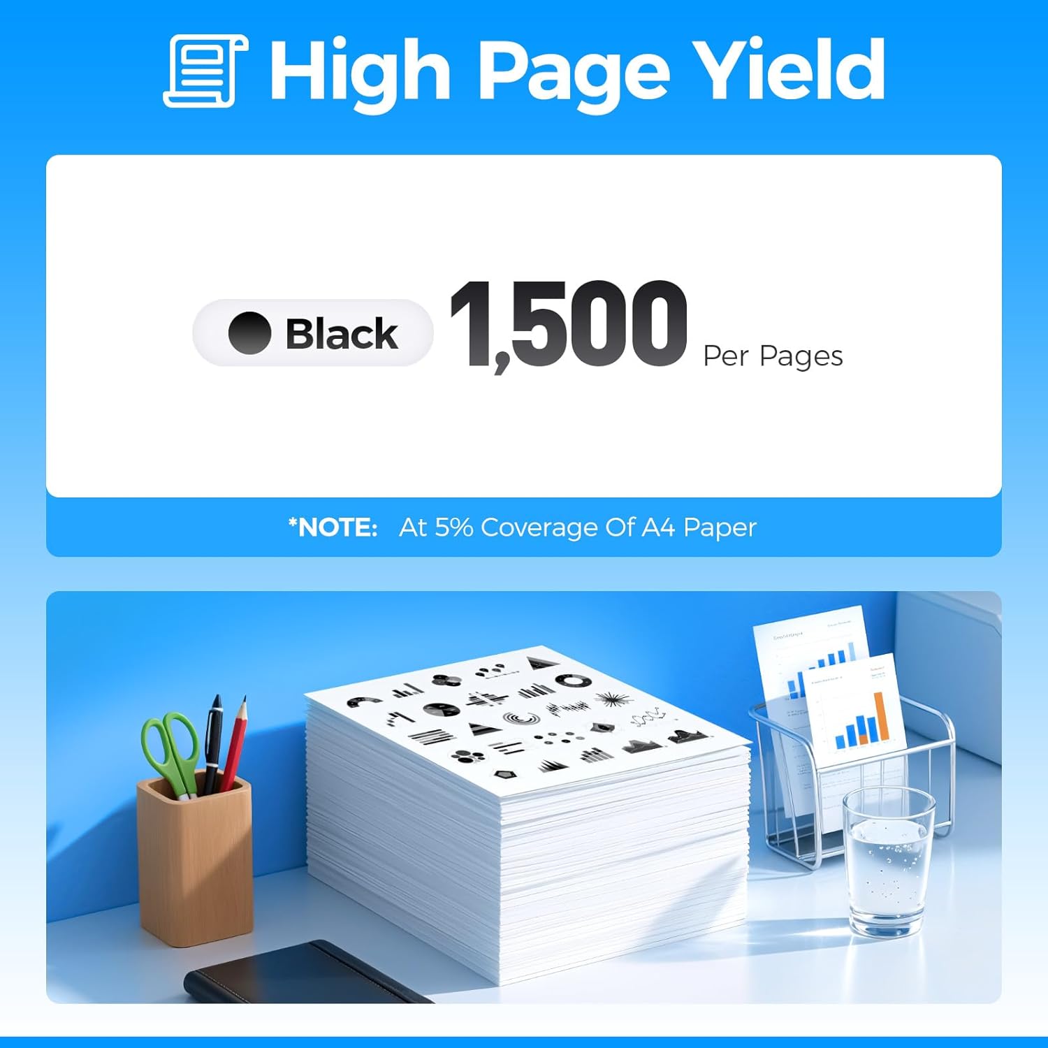 - Yield & Version: 1,500 pages per MLT-D104S Black Toner Cartridge (at 5% Coverage), High Yield Version MLT-D104S toner cartridges.