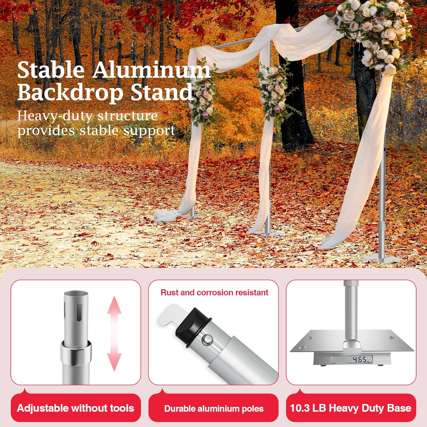- 【 Wide Application】This decoration backdrop stand is perfectly suitable for weddings, parties, birthday, baby shower, photography, photo booths, banner stand backgrounds, business events and so on. You can hang drapes, balloons, string lights and flowers to make your backdrop stand amazing