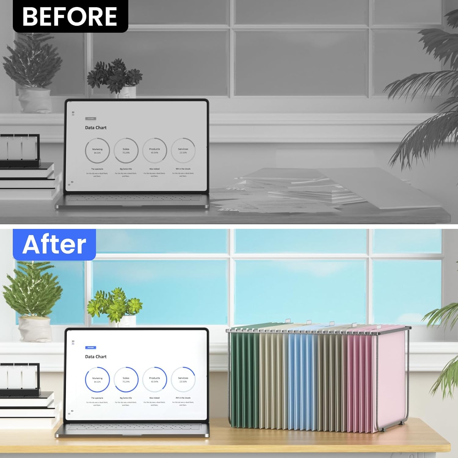 - Hanging File Organizer: 25 pack letter size hanging file folders and a File Folder Frame are designed for desktop file organization, promoting neater and more efficient storage of files and documents in the office or home.