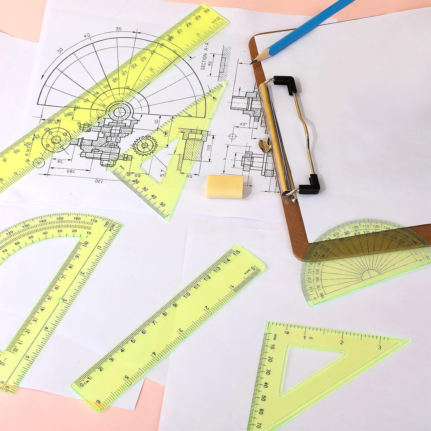 - Complete math tool set: you will be provided with 2 protractors of 15.5 cm and 10 cm, 2 triangle rulers of 45 degree and 60 degree, 2 straight rulers of 6 inch/ 15 cm and 12 inch/ 31 cm, totally 6 pieces; The complete combination meets the needs of various occasions, you can choose the right ruler to work according to your needs