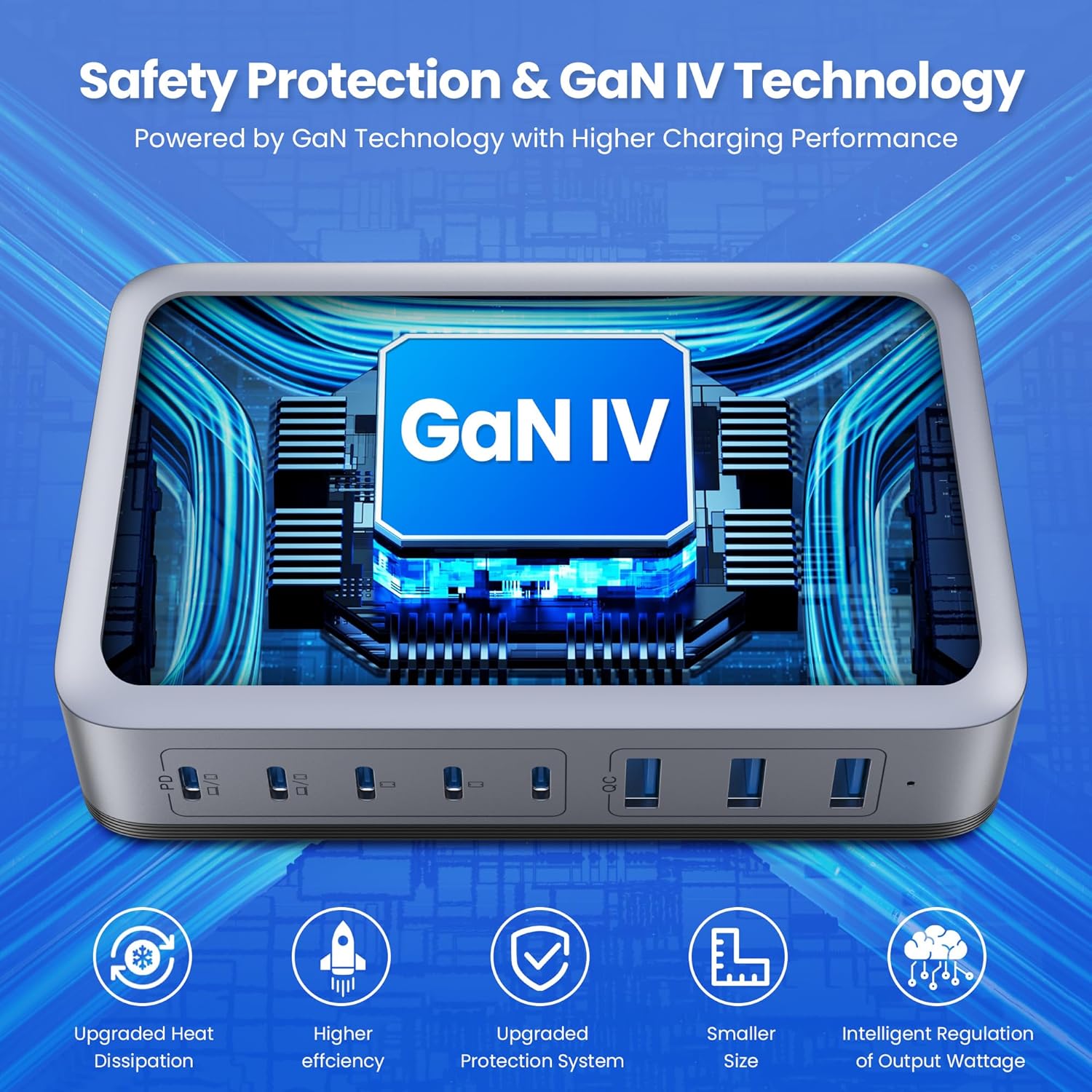 USB C Charger Block 515W[2025 Upgraded] GaN IV 8 Port Fast Charging Station Hub,Dual PD 100W USB C Laptop Charger Compatible with MacBook Pro/Air,iPad,iPhone 16/15,Galaxy S23/S24 Steam Deck Dell XPS