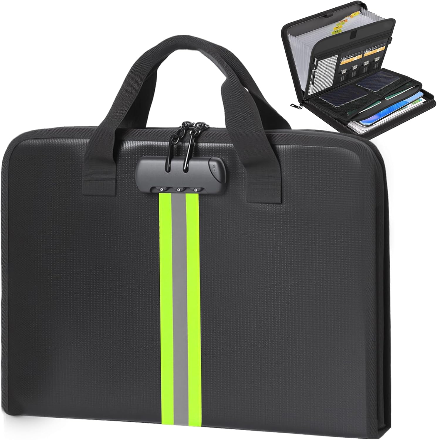 Accordion File Organizer with Combination Lock,Fireproof Expanding File Folder with Multi Pockets,13 Pockets Document Organizer with Handle & Labels,Portable Home Travel Safe Storage Letter A4 Files