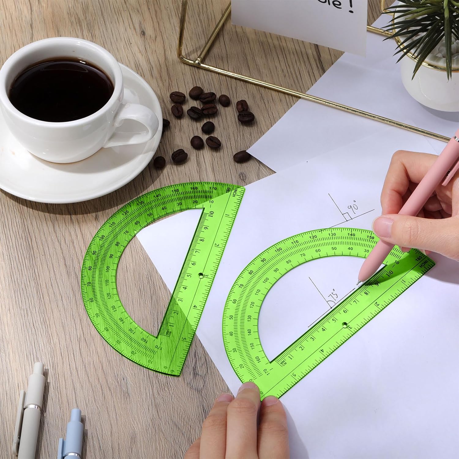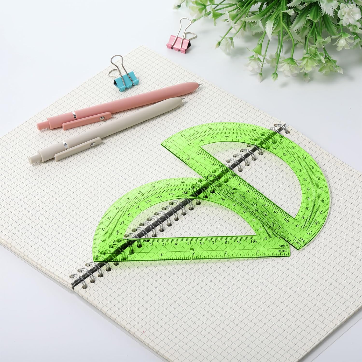 Zonon 2 Pcs 6 Inch Plastic Protractor Math Protractors 180 Degrees Angle Measurement, Translucent for Geometry Classroom Kid Student School Office Supplies(Green)