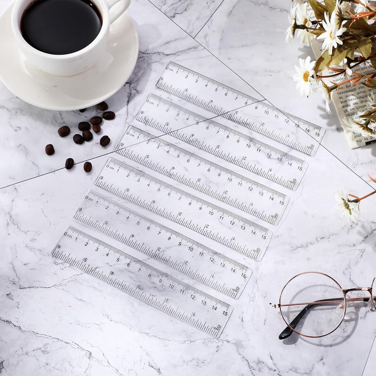 Zonon 6 Pcs 6 Inch Ruler Bulk Clear Plastic Flexible Straight Metric Rulers with Centimeters and Inches Drafting Measuring Tool for Classroom School Students Education