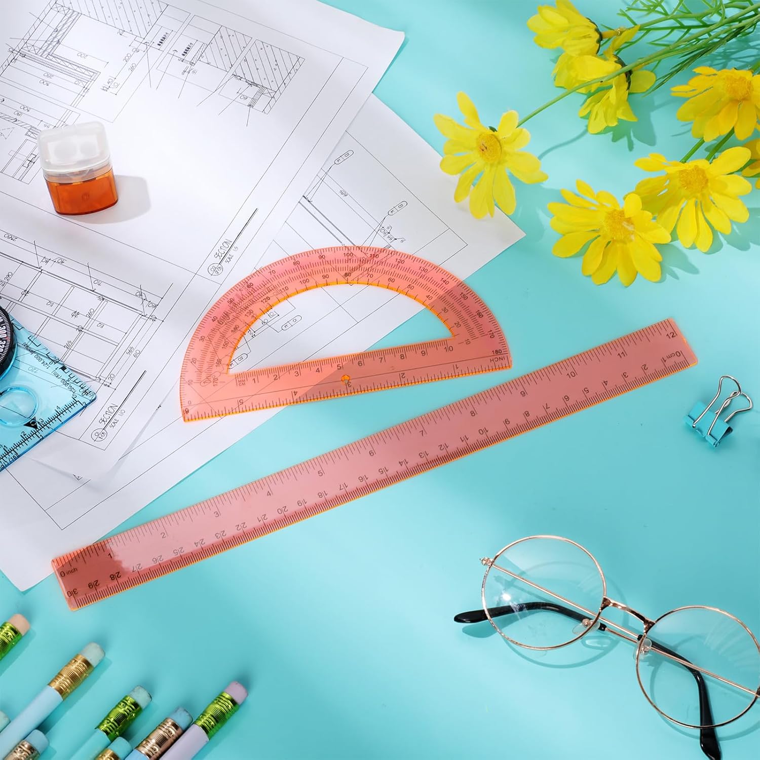 - Meet Your Requirements: you will receive 1 plastic ruler and 1 clear orange plastic protractor; They can be utilized to measure the length and the degree of the angle, which can meet your daily life and study requirements