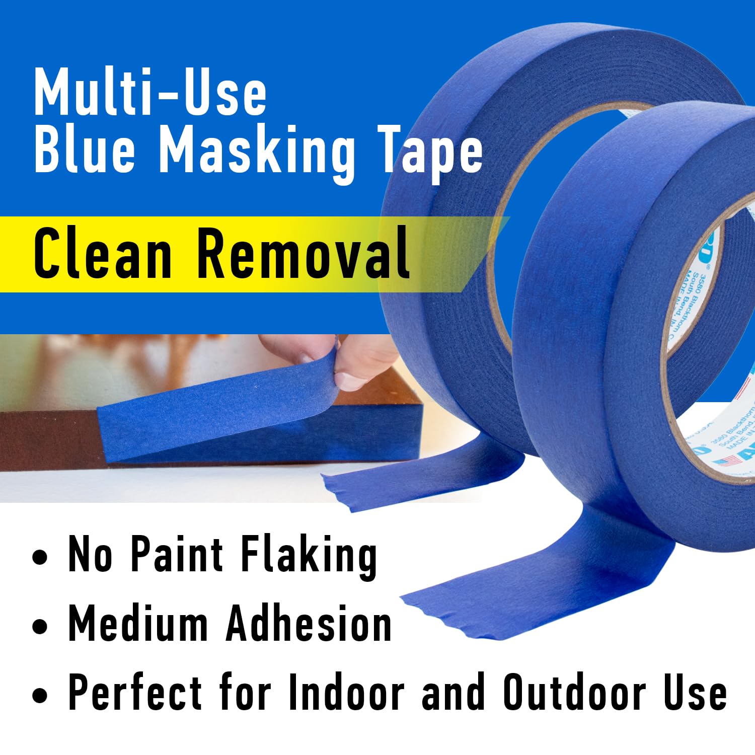 - Versatile Blue Painters Tape for Multiple Surfaces: Versatile wall tape compatible with various materials like plastic, metal, wood, and glass—perfect for all your indoor paint tape needs.
