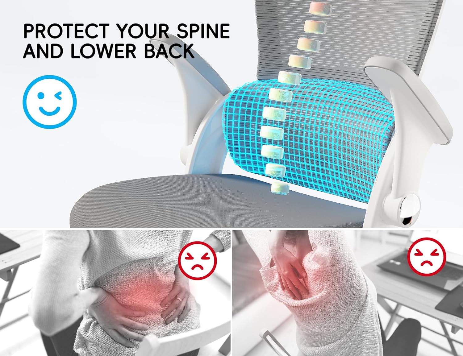 - Breathable Mesh Back for Cool, Sweat-Free Sitting:Stay cool even during marathon sessions! The high-density mesh back promotes airflow, keeping you comfortable and sweat-free—no more sticky backs in summer. Plus, the flexible mesh adapts to your movements, offering dynamic support without sacrificing breathability.