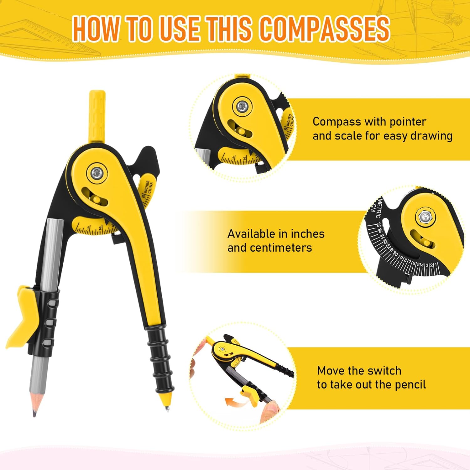 - Integrated compass package: compass comes with a box, contain 1 piece geometry compass, 1 box refill packaged in a transparent box, convenient for organized and carry
