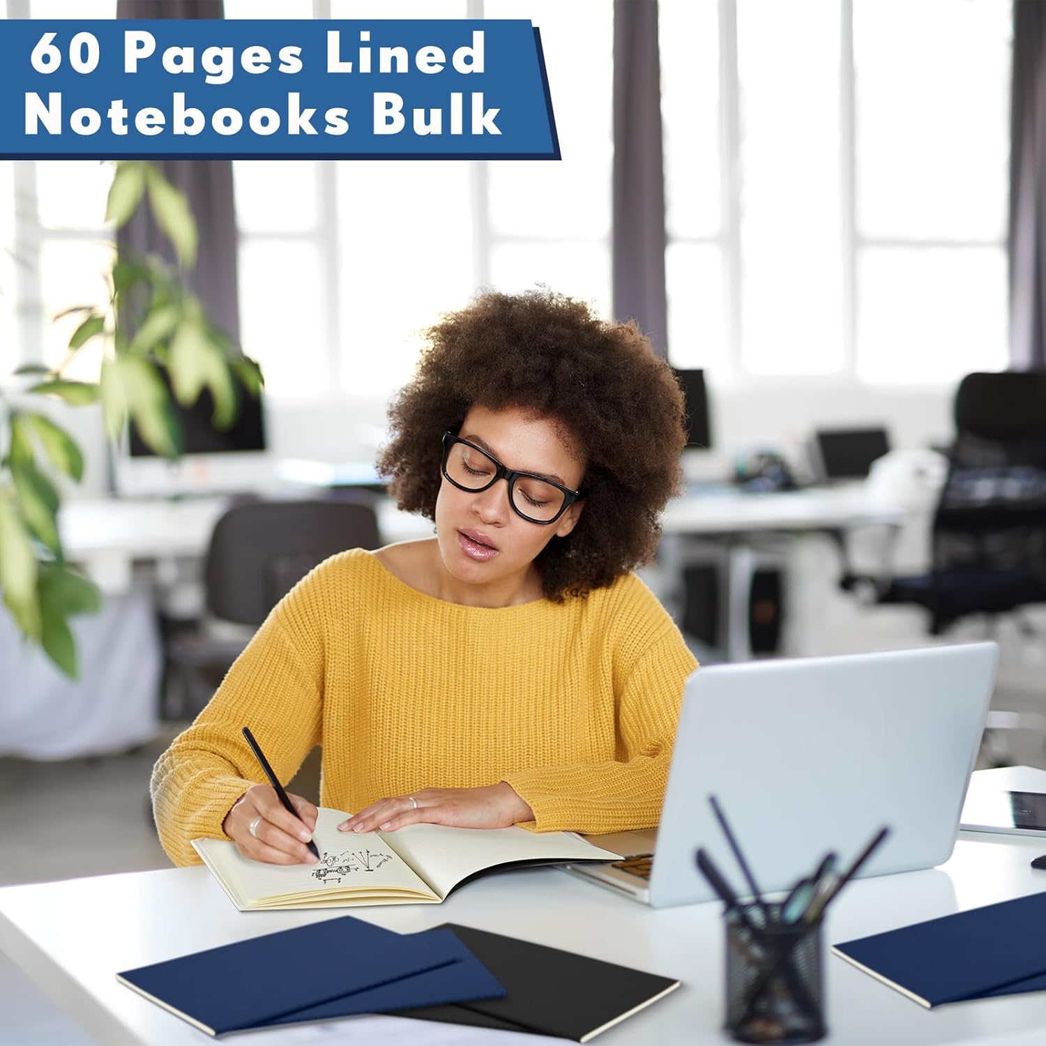 100 Pcs Kraft Notebook Journals 5.5 Inch x 8.3 Inch A5 Softcover Notebooks Bulk for Writing Sketch Office Notepad with 60 Pages 30 Sheets(Black, Navy,Lined)