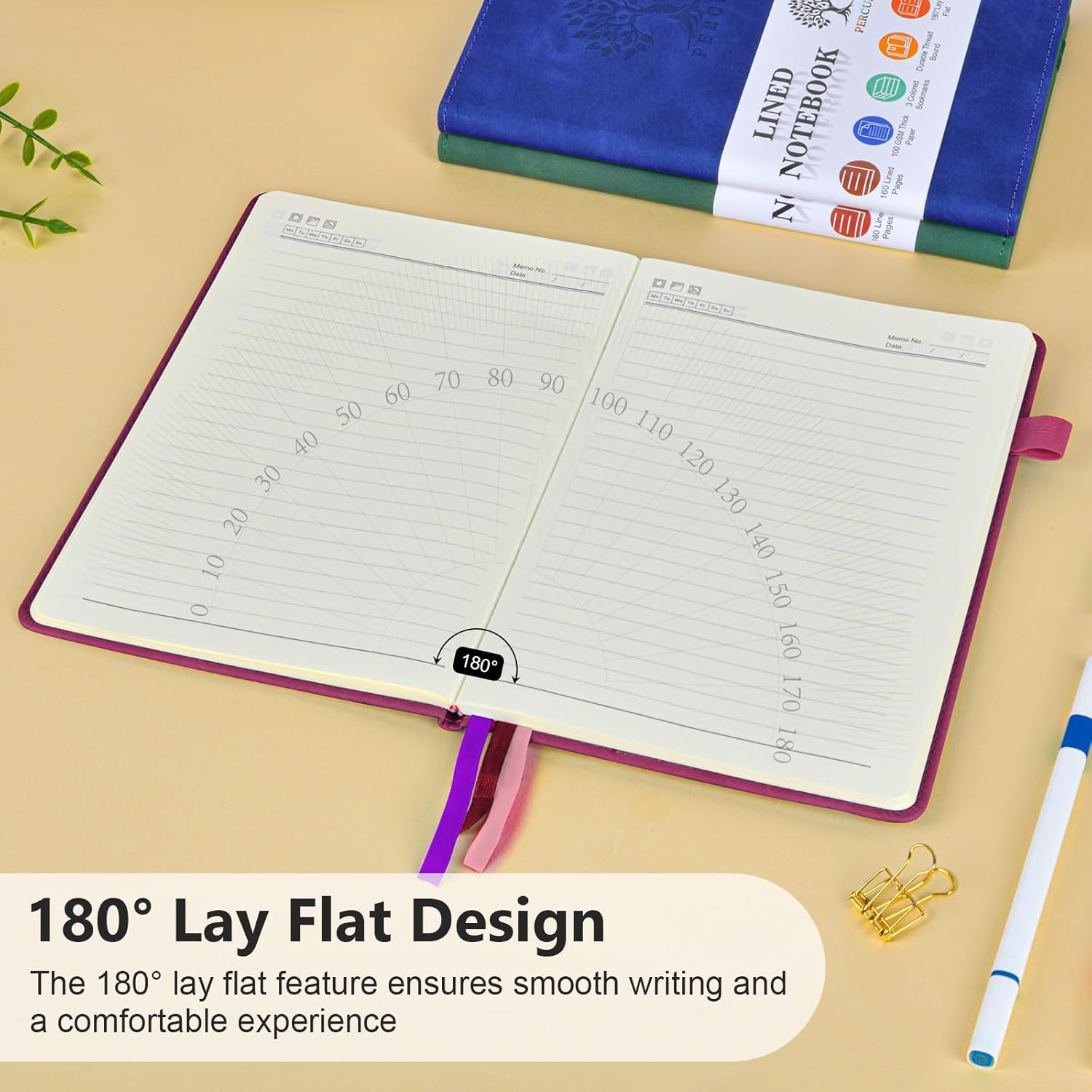 - 【180° LAY FLAT DESIGN & PREMIUM LINED PAPER】: Lay the notebook completely flat for easy writing in any setting—whether at your desk, in a café, or on the go. The 160 pages of 100 GSM lined paper (7mm spacing) offer a smooth writing experience, ideal for journals, work notes, school assignments, or Bible study notes, with minimal ink bleeding or feathering.