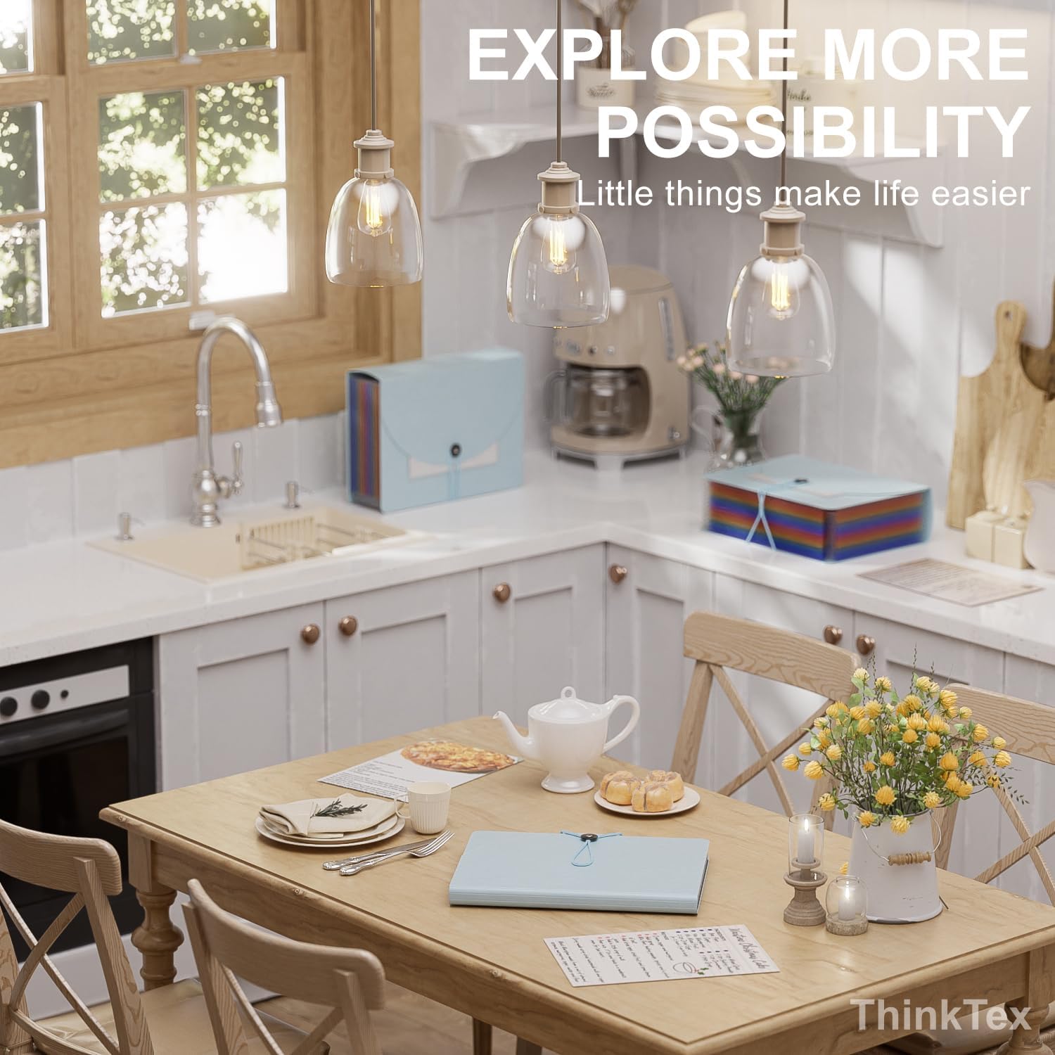 ThinkTex Accordion File Organizer, 12 - Pocket Expanding File Folders for Paper Receipts, Bill&Taxes Organizer, Letter/A4 Size Document Holder for School, Office, Home with Colorful tabs-Light Blue