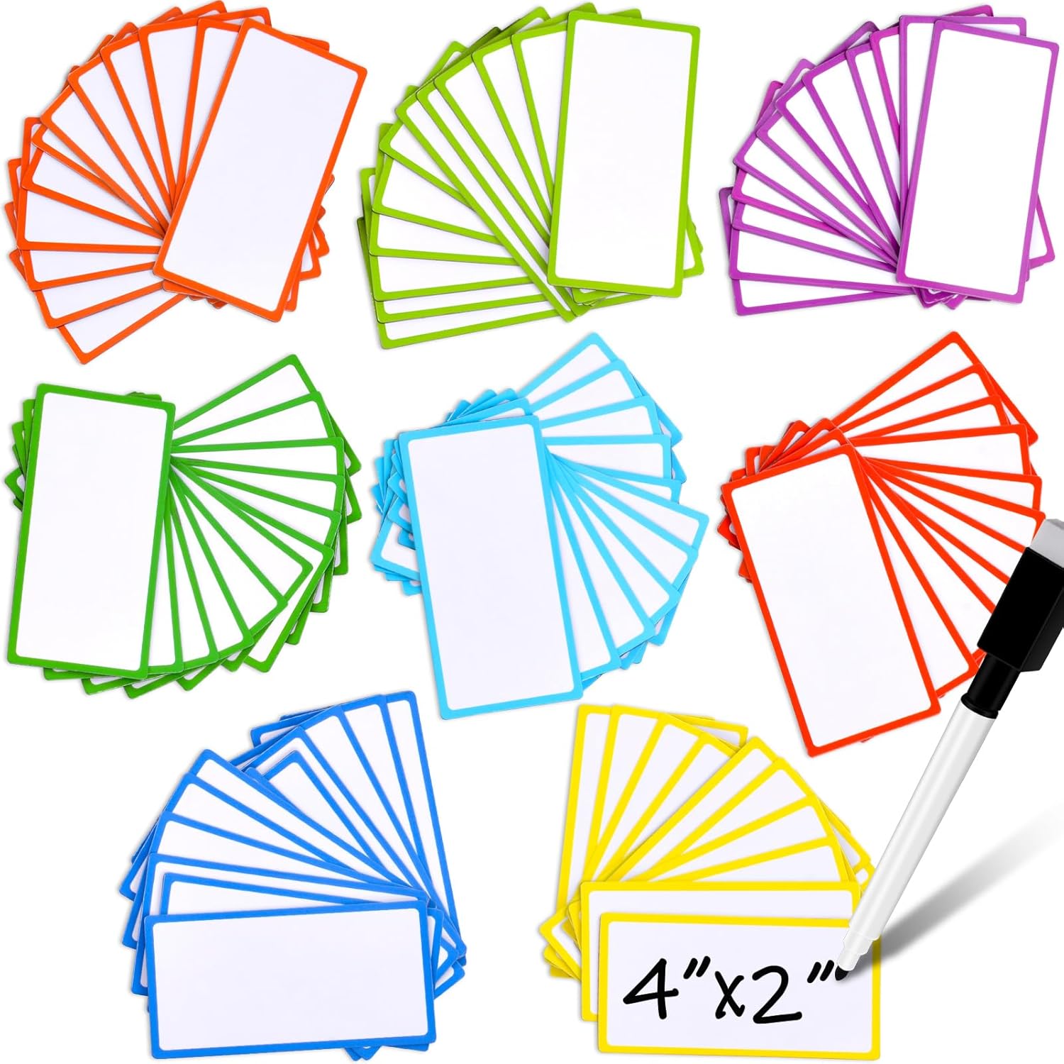 - 【Extra Thick Size】80 magnetic dry erase labels (10 per color, 8 colors) are 0.06 inches thick, more thicker and more resilient than other magnet label on the market. Dimensions: 10 x 5 cm (4" x 2") The 8 colors of magnetic labels are red, orange, purple, green, grass green, blue, sky blue and yellow. These colorful dry erase magnets labels are available in 8 stylish and adorable colors