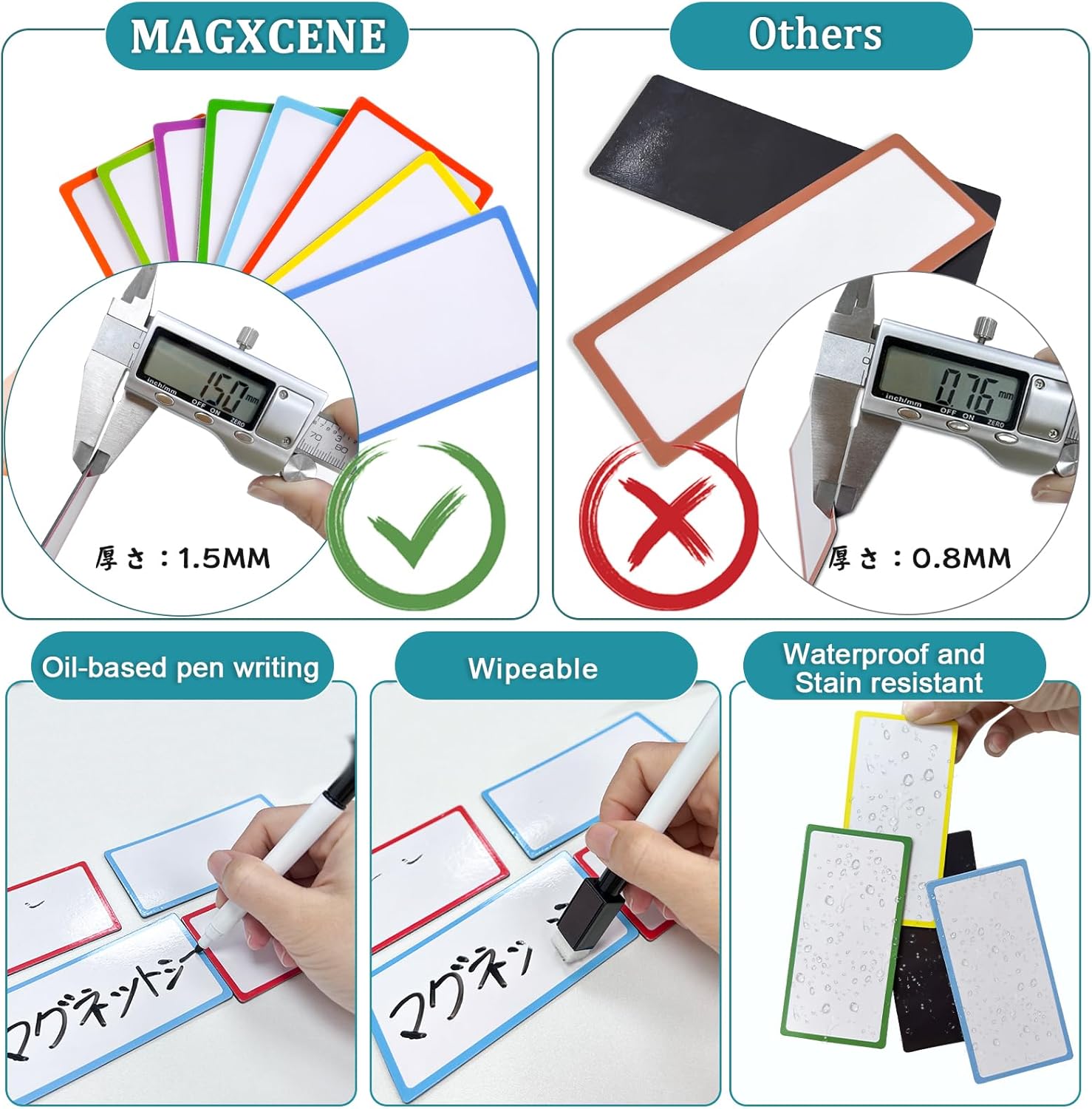 - 【Durable and High-Quality】Our 0.06‘’ thick dry erase labels magnetic hold more firmly than thinner labels and are easy to wipe clean. These high-quality full backing magnetic name tags are erasable, allowing for quick removal even after extended periods of writing the name tags sticker