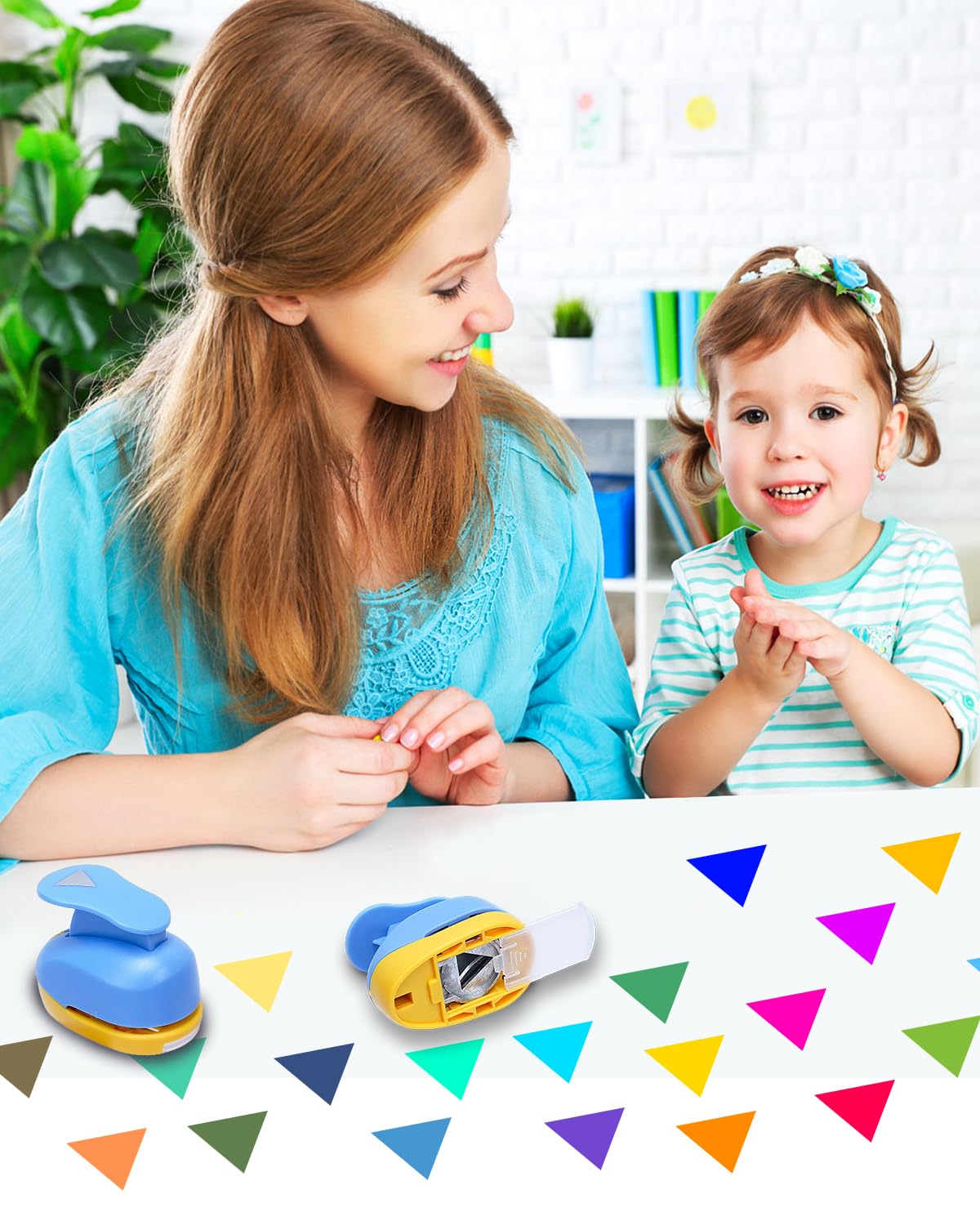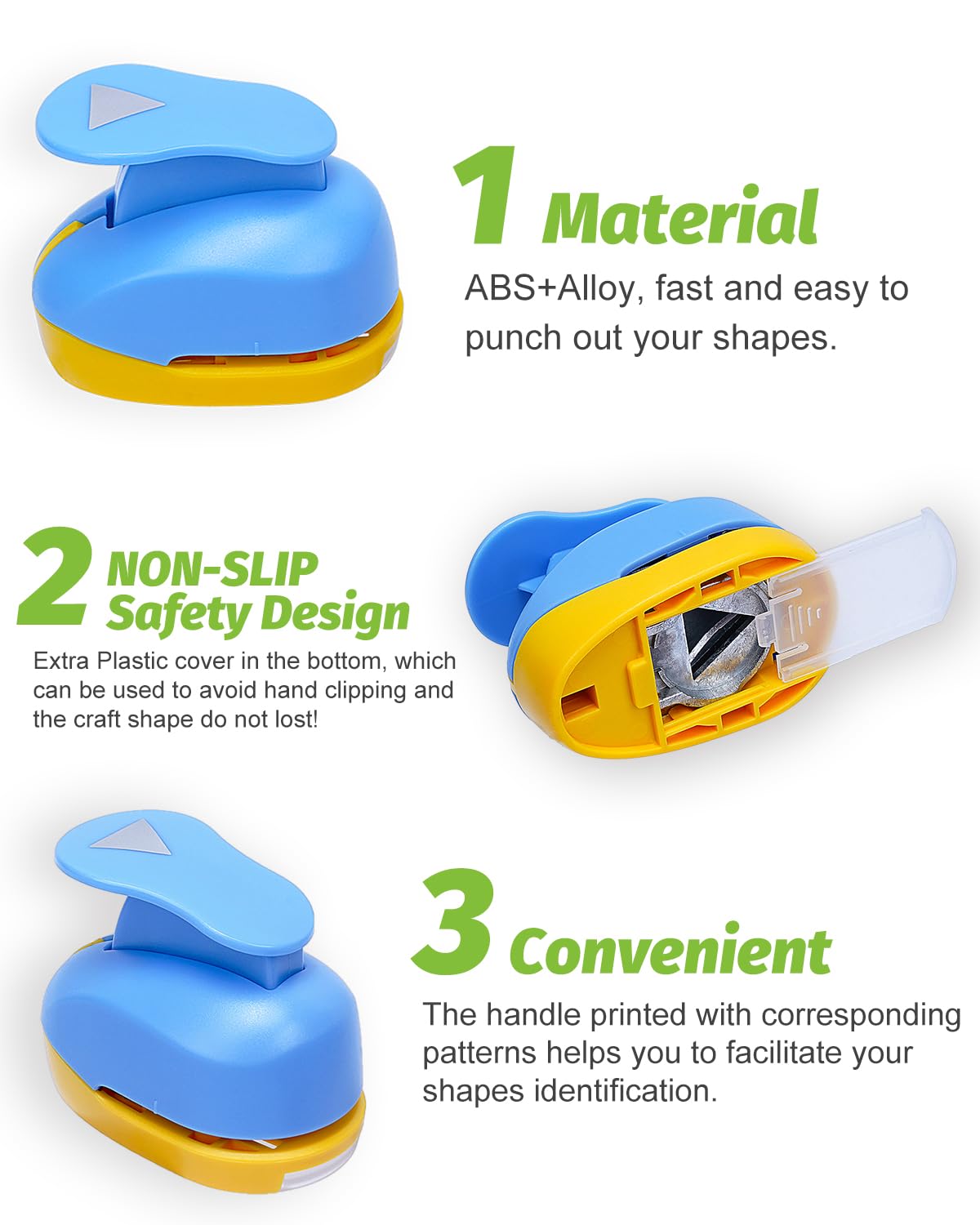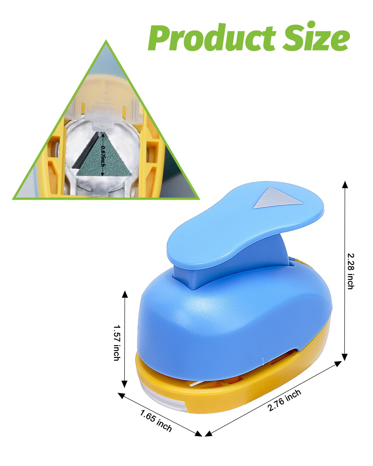 - Triangle Hole Punch: Cut Out Size: 0.8 inch equilateral length triangle. Designed for easier punching and a perfect paper square, our hole puncher for crafts can punch out a more beautiful 1 inch punch with a bigger handle, visible blade, and child safety lock