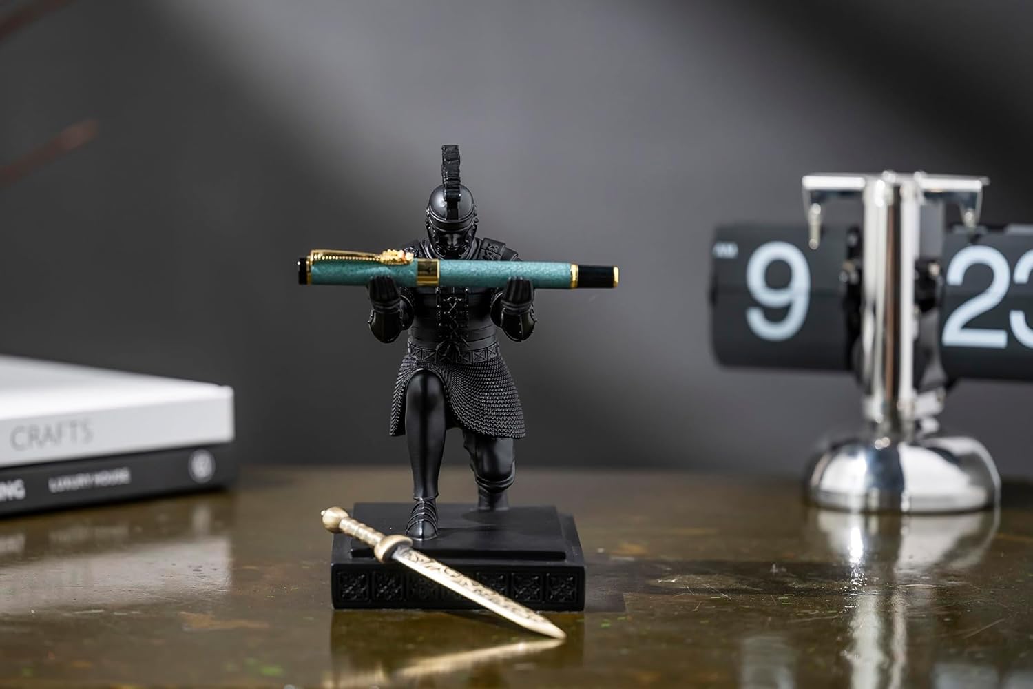 - This warrior knight pen holder with roman era imperial guard design shape, looks great on desk ornament for men. Perfect as Company prize, Birthday, Father's Day, Christmas Gifts. Perfect fit for offices, study and living room etc.