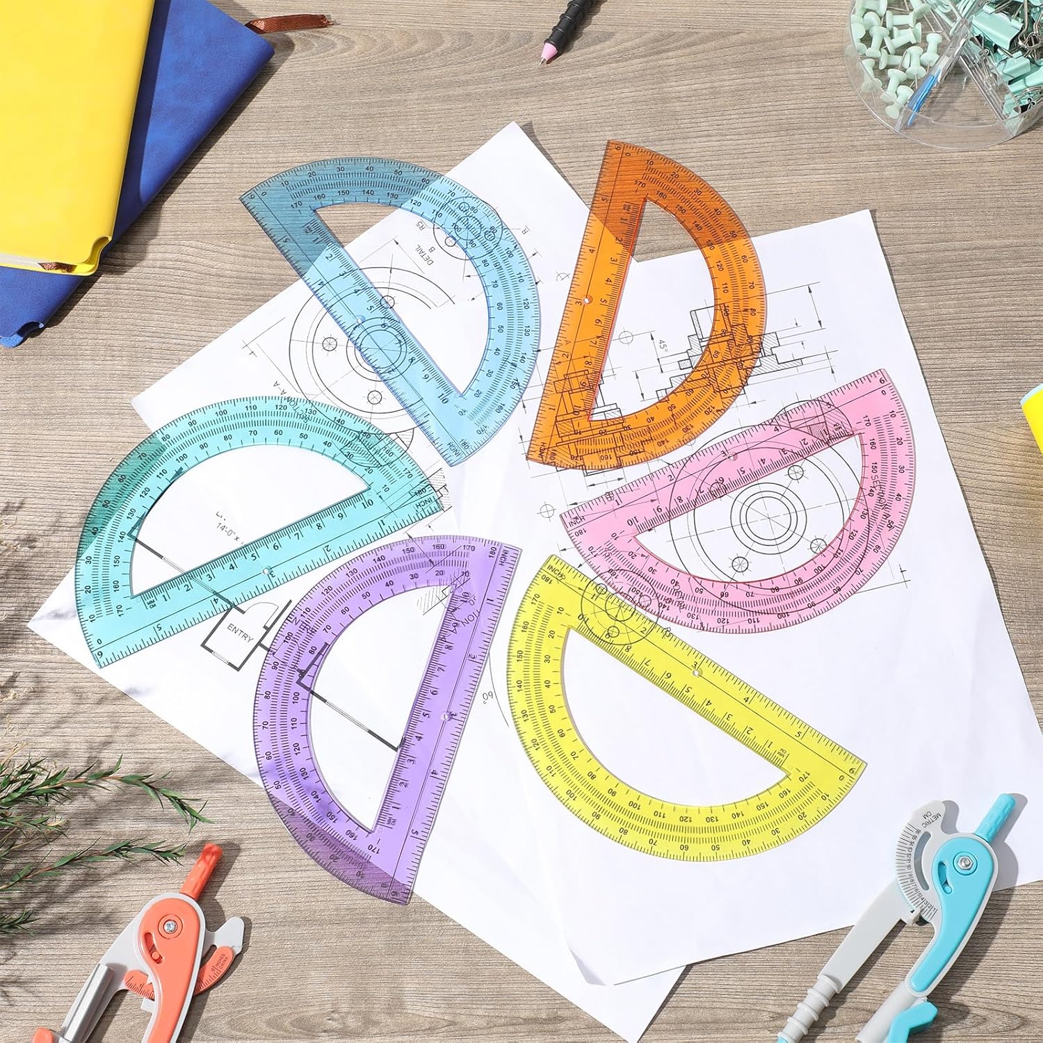 Chengu 12 Set Compass and Protractor Set, Multicolor Compass Geometry Tool 6 Inch 180 Degree Translucent Protractors for Geometry, Math Graphing Drawing Tools for Office and School Supplies