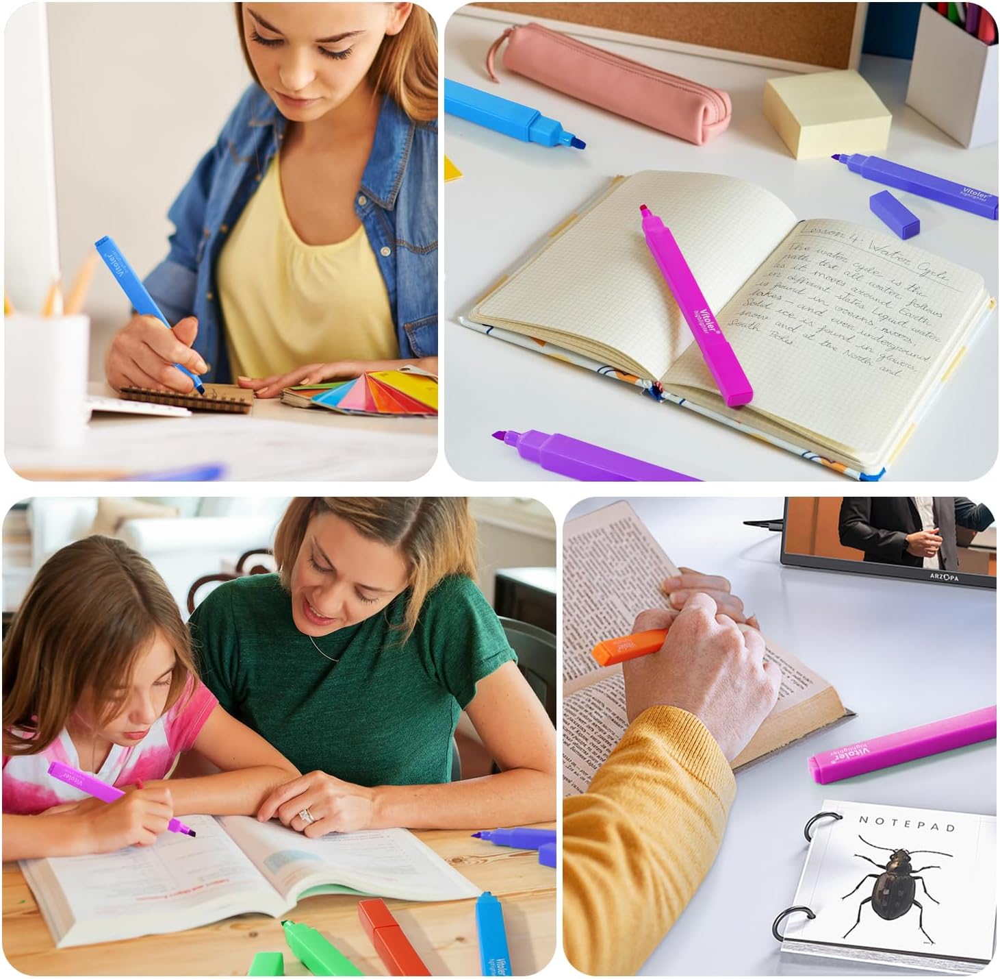 Vitoler Highlighters,10 Pack Assorted Colors Highlighters with Soft Chisel Tip,Bible Highlighter No Bleed,Book Markers for Women