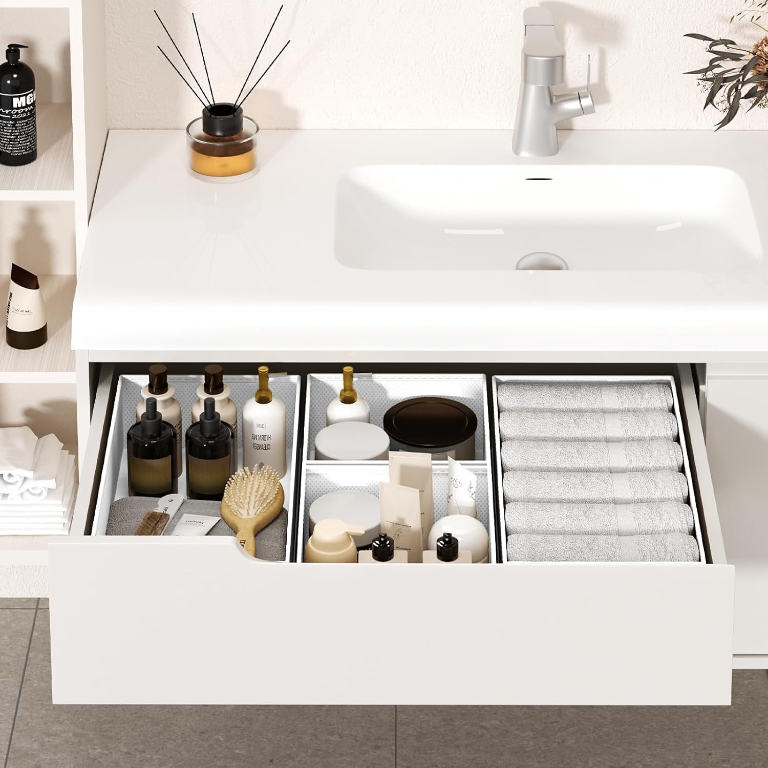 - Stable Structure:The dresser drawer organizers is made of high-quality non-woven fabric, with reinforced lining and professional sewing technology to ensure that each bathroom drawer organizer is firm and not easy to deform, and can keep the interior of the closet storage drawers neat and tidy for a long time, suitable for frequent daily use