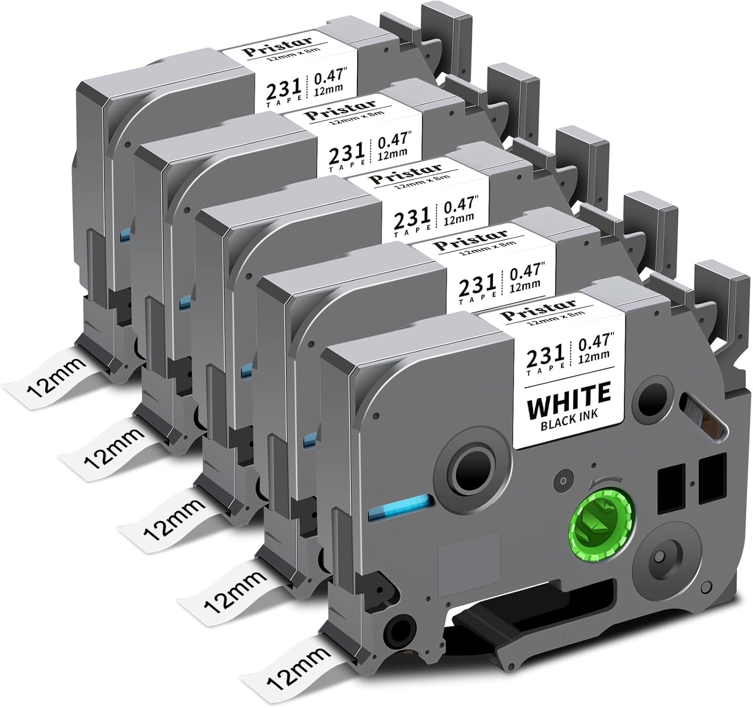 Replace for Brother Label Maker Tape 12mm 0.47 Laminated Black on White TZe-231 TZe231 TZ Tape, PTouch Compatible with Brother P Touch D210 D220 H110 D600 D400 1750 2030 Label Maker Refills, 5X