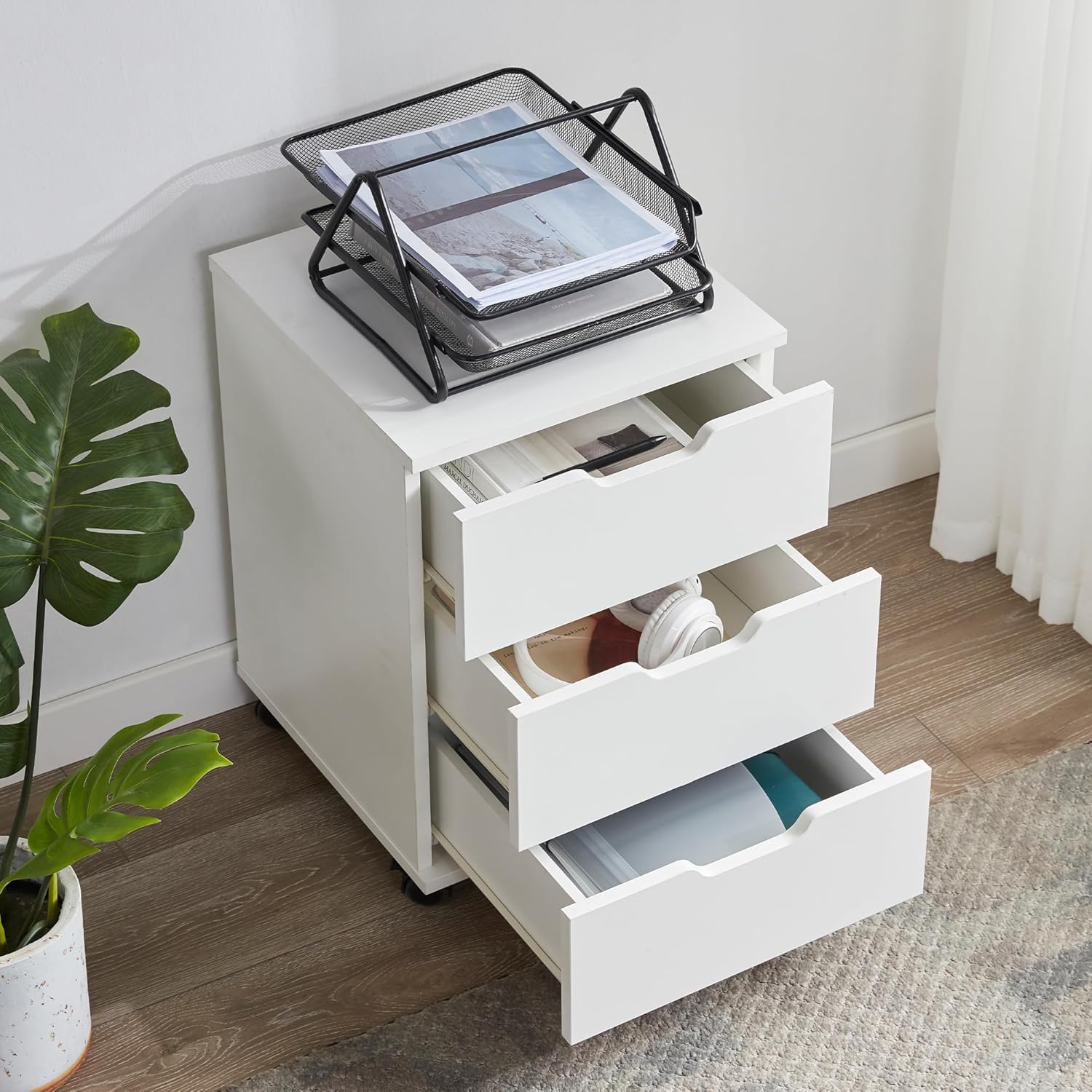 Farini 3-Drawer Under Desk Wooden File Storage Cabinet with Lockable Caster for Home Office,White,Fully Assembly