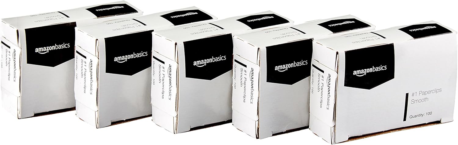 Amazon Basics Paper Clips, No. 1, Silver | Smooth | 1000 Count, Pack of 12