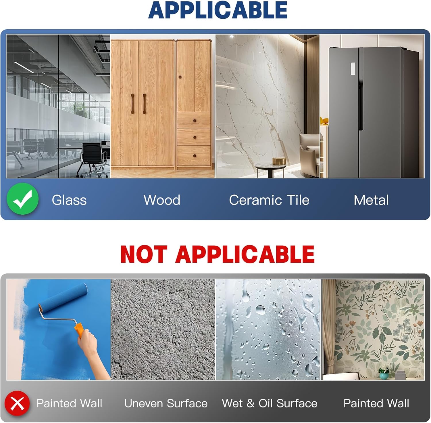 - 🚫 Pro Tips for Perfect Results 🔹Avoid Flat-Paint Walls/Fabrics: Includes test patch to verify surface compatibility pre-use. Optimal Surfaces: Bathroom tiles, locker doors, shop windows, and laminate furniture