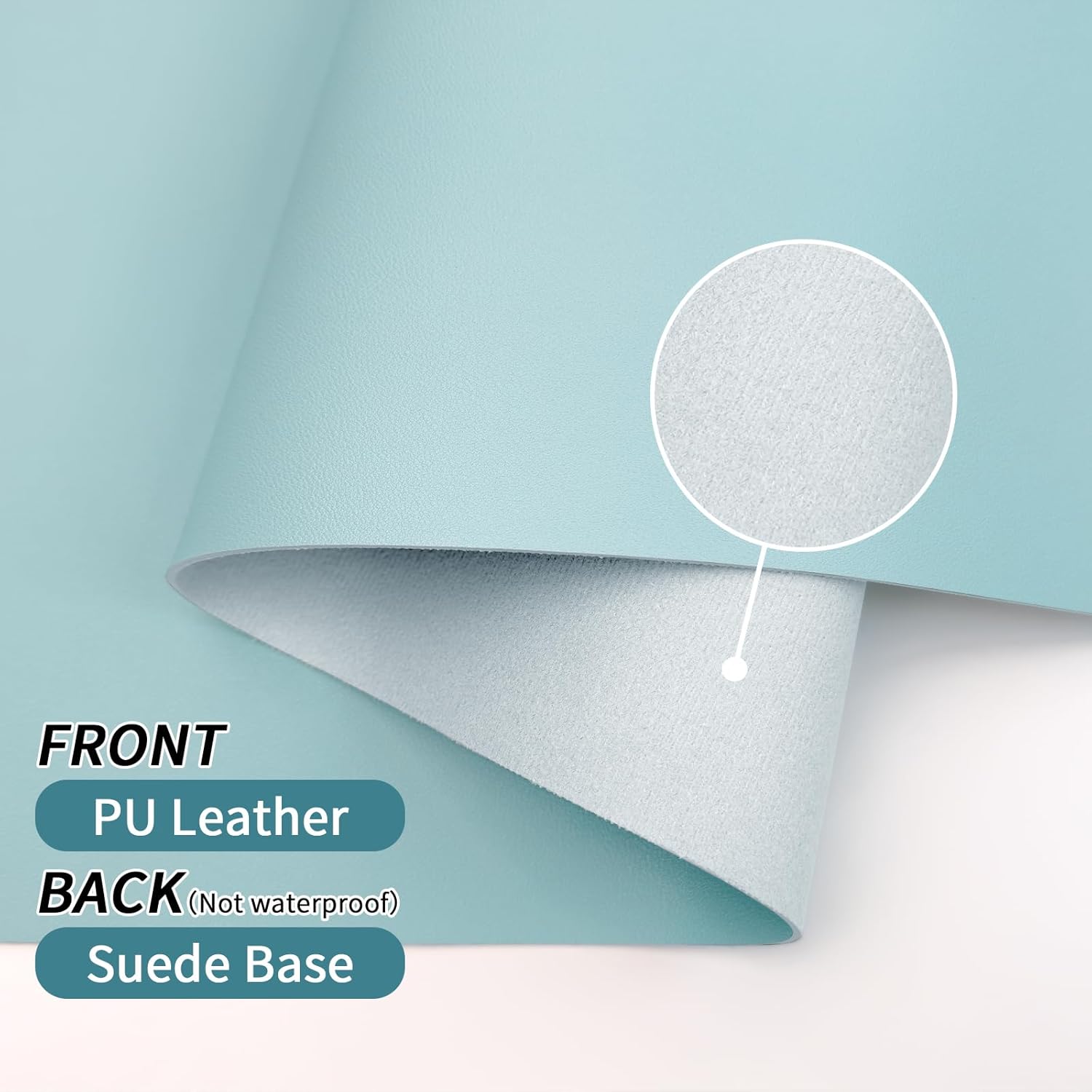 Bloss Light Blue Desk Mat, Large Mouse Pad, Leather Desk Blotter, Waterproof Desk Pad for Office Home Decor/31.5×15.7 Inch