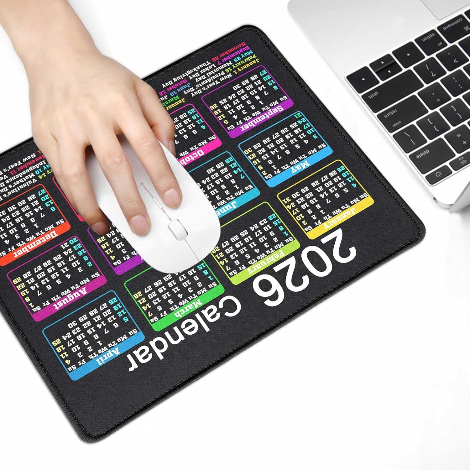 Mouse Pad with Non-Slip Rubber Base, Waterproof Computer Mousepad with Stitched Edges, Mouse Pads for Computers, Laptop, Gaming, Office & Home, 9.5 x 7.8 in (Black Calendar 2026)