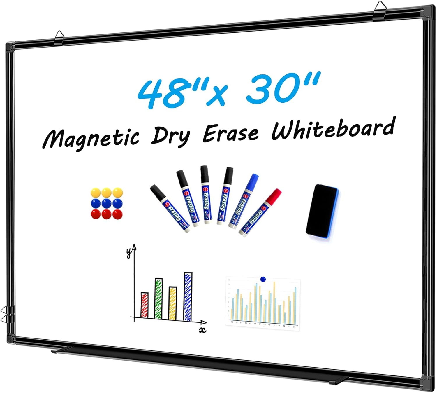 H-Qprobd 48"x30" Magnetic White Board Dry Erase Wall Mount Whiteboard - Office Home Classrooms White Board Hanging Writing Board with Black Aluminum Frame
