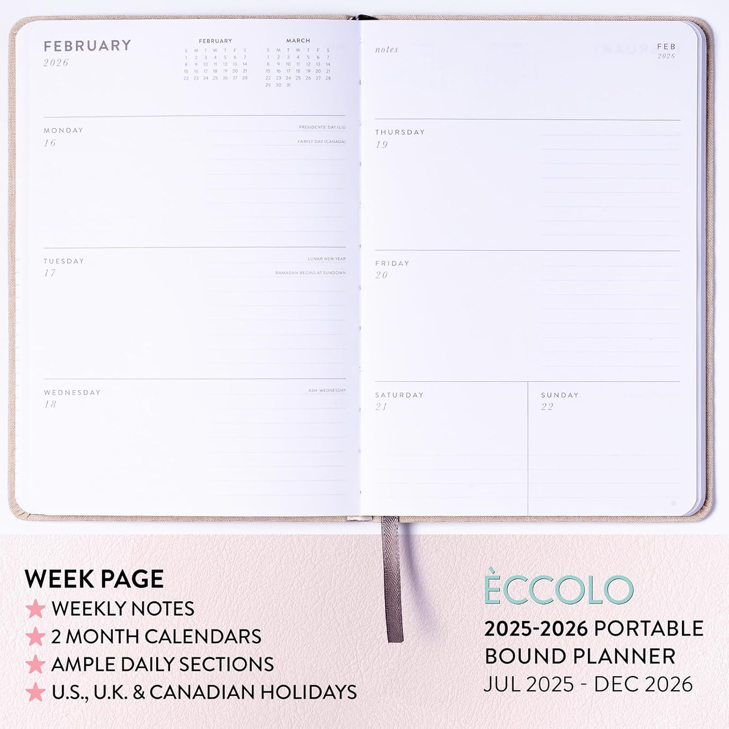 2025-2026 Eccolo 18 Month Linen Bound Planner, Monthly & Weekly Pages (5.25 x 7.75" - July 2025 to Dec 2026 - Delicate Floral)