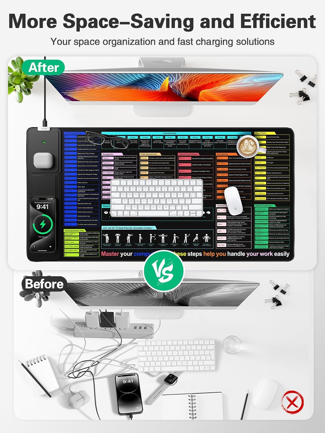 - Upgrade Your Workspace & Ideal Gift: More than just a mouse pad, it's a command center that declutters your desk, charges your devices, and sharpens your excel/word/powerpoint/windows skills. It makes a perfect and impressive gift for office professionals, students, and anyone who appreciates smart, organized, and tech-forward accessories.