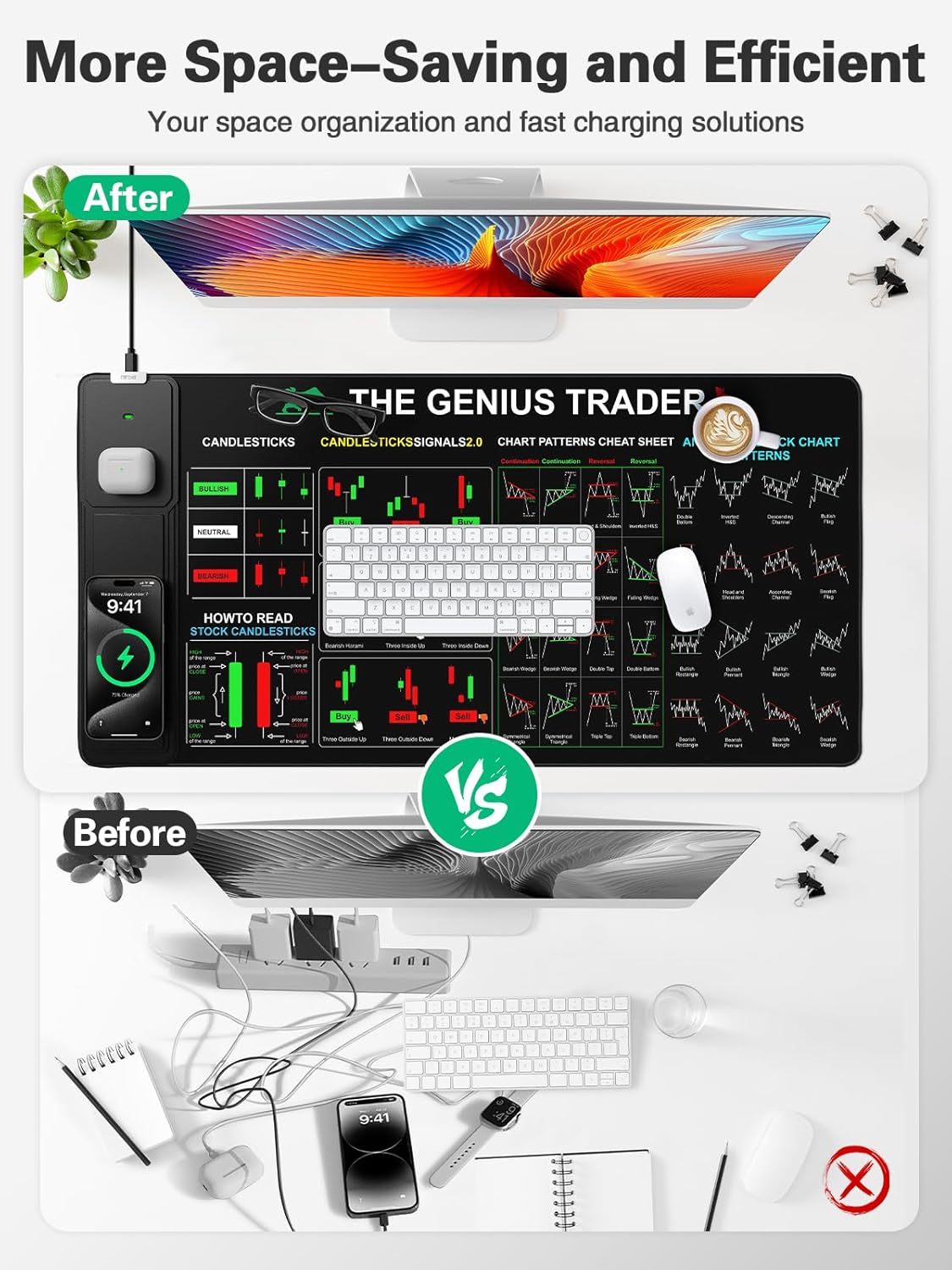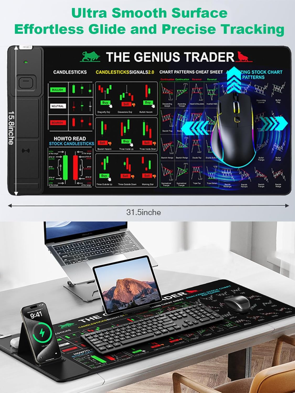 - Upgrade Your Workspace & Ideal Gift: More than just a mouse pad, it's a command center that declutters your desk, charges your devices, and sharpens your trading skills. It makes a perfect and impressive gift for stock traders, gamers, office professionals, students, and anyone who appreciates smart, organized, and tech-forward accessories.