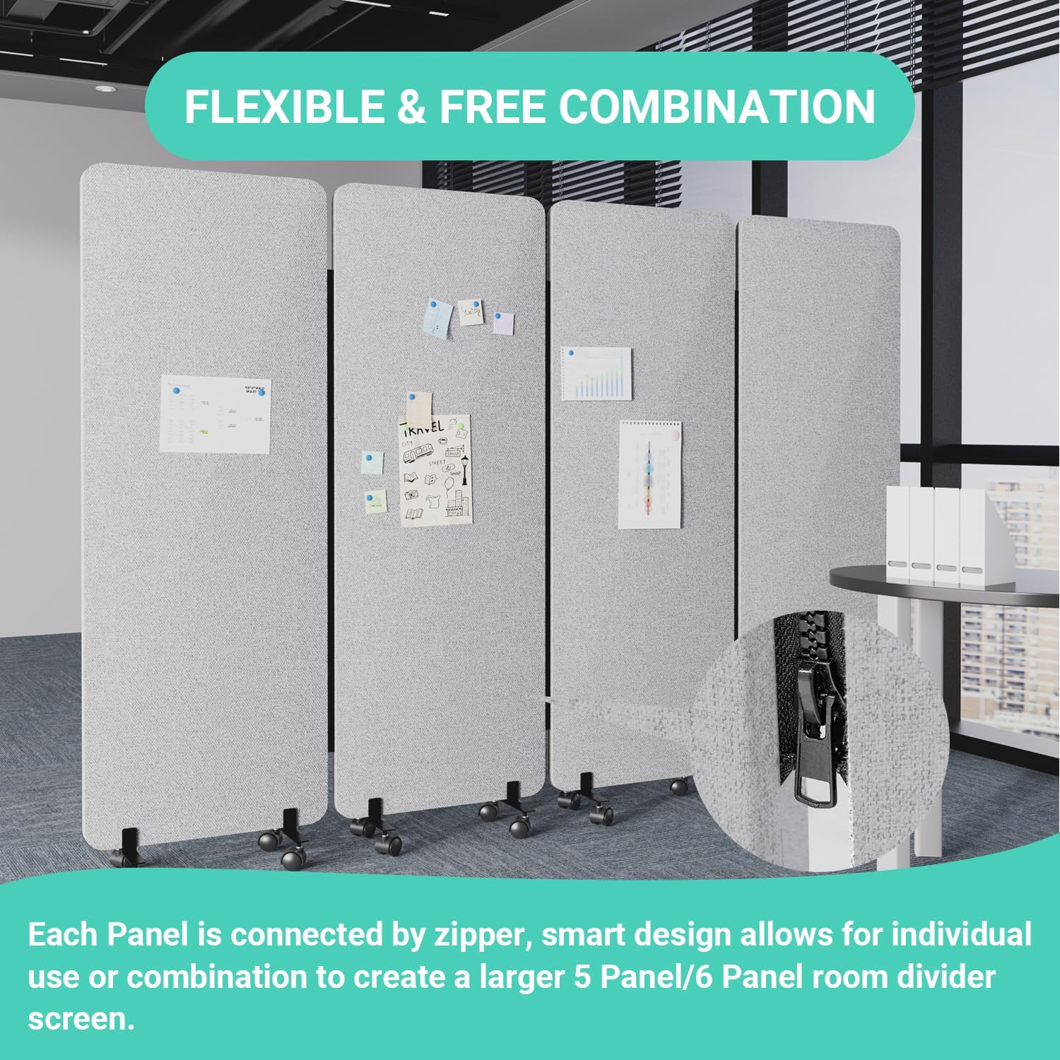 - SMART & FREE COMBINATION: Each Privacy Panel Screen is connected by zipper, smart design allows for individual use or combination to create a larger 4 Panel room divider screen according to your project demands. The flexible design allows for wrapping the room partition around office desks and tables to create private workplace. Each Panel Size: 24”L x 66”H