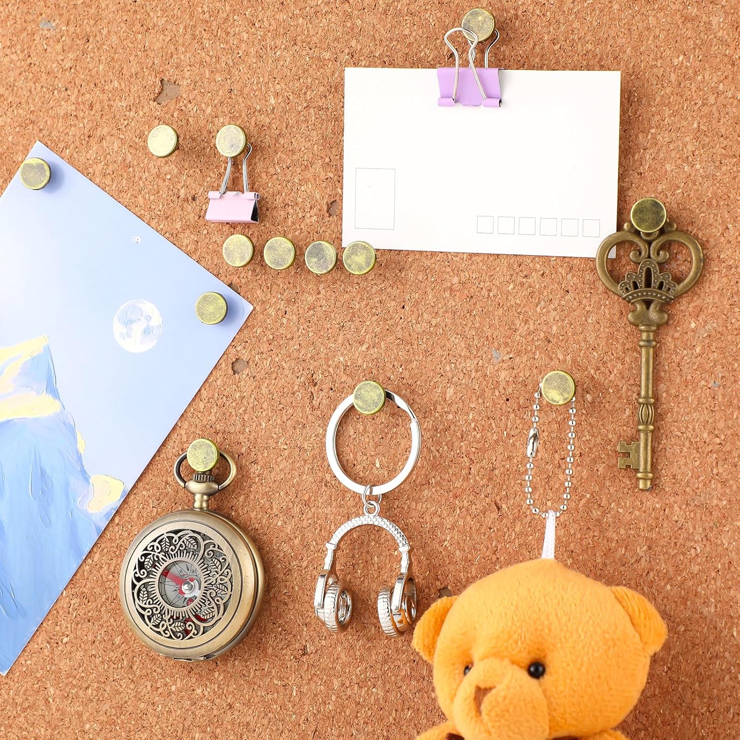 30 Pieces Push Pins, Metal Thumb Tacks for Picture Photo Hanging, Wall Pins for Board Posters Bulletin Maps, Wall Tack for Office Home Decorative(Bronze)