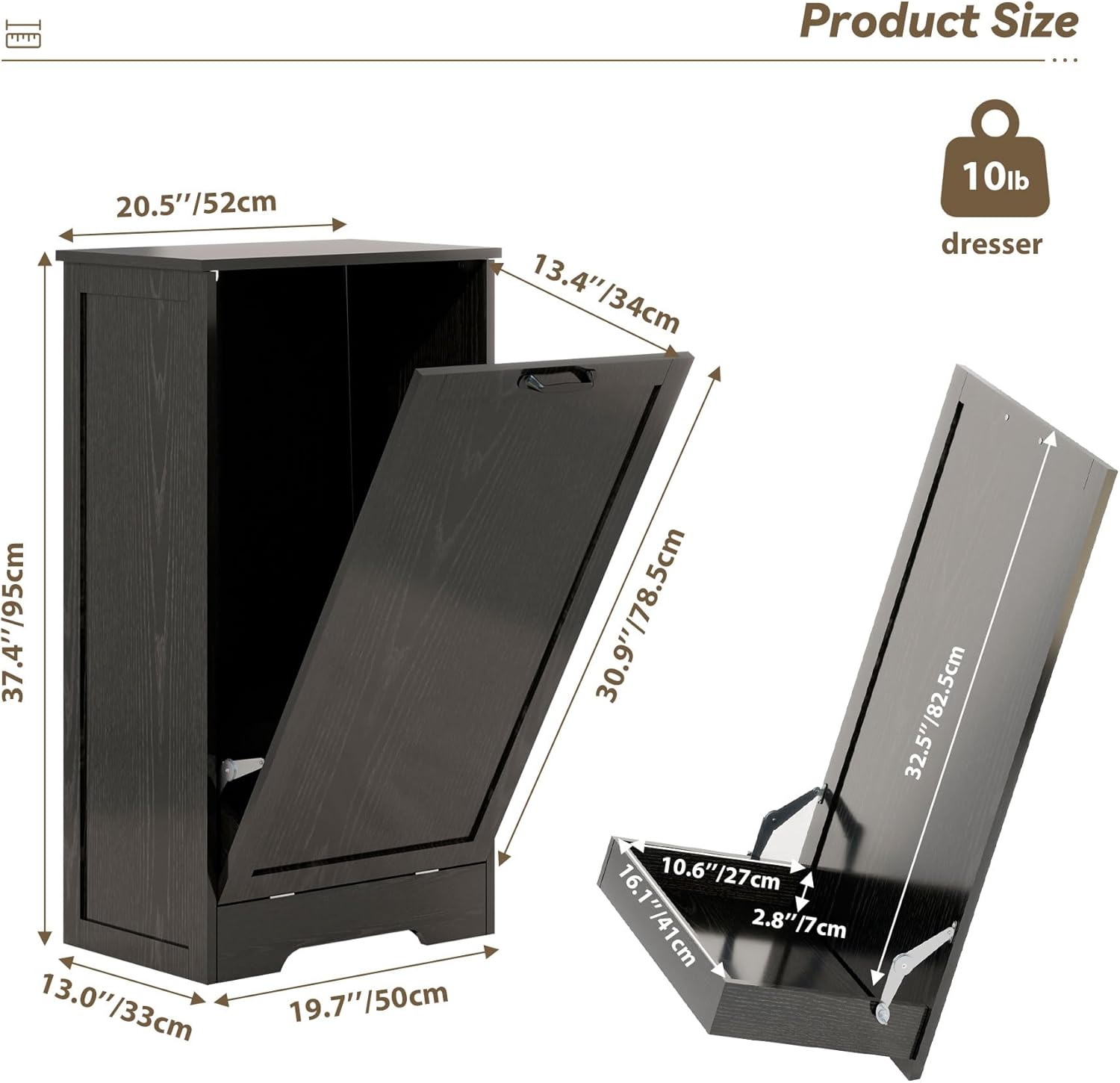 - High-Quality Cabinet Trash Can: Crafted from high-density MDF, this pull out trash can is incredibly sturdy, with a smooth, scratch-resistant surface that maintains its pristine appearance even with daily use. Reinforced corner joints and durable metal hinges enhance structural integrity, preventing warping or loosening over extended use. Every component is engineered to outlast standard storage units, merging resilience with refined design seamlessly.
