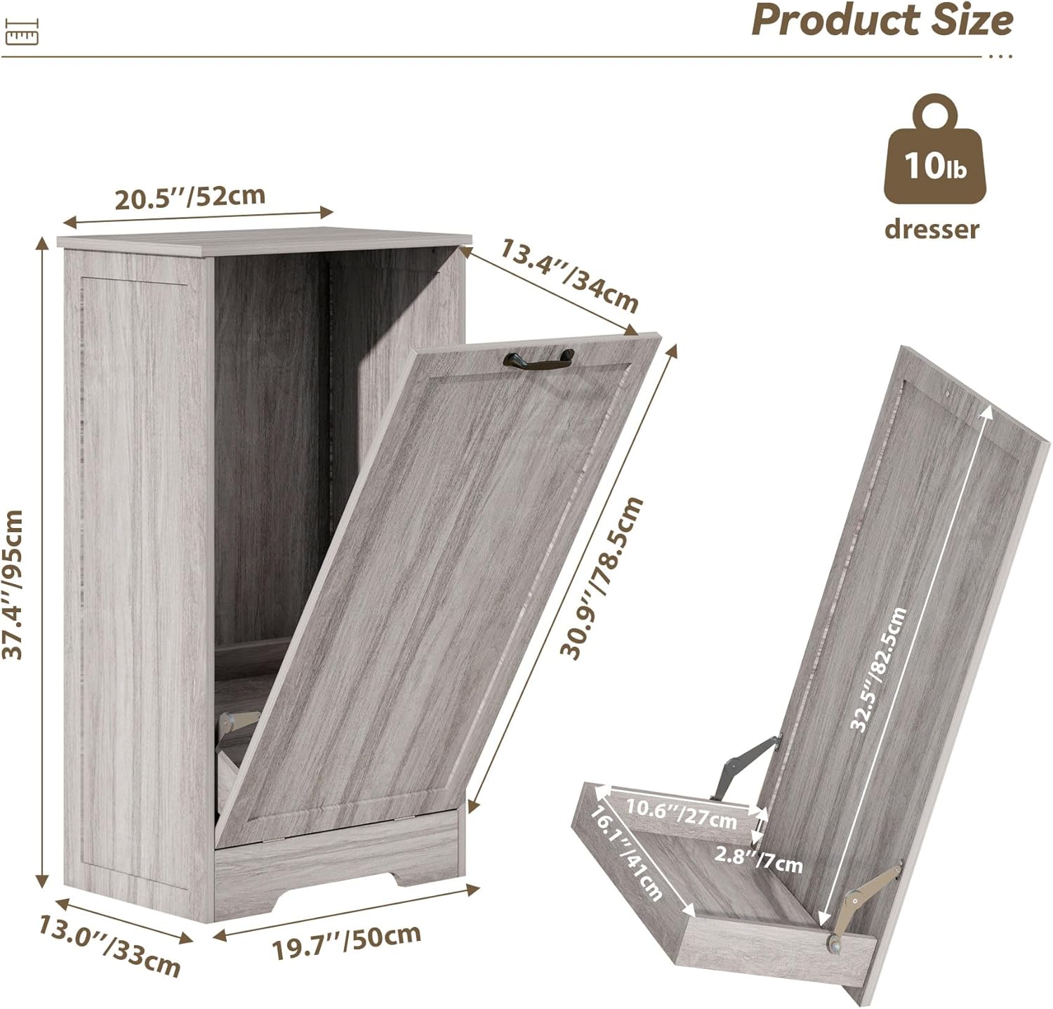 Tilt Out Trash Can Cabinet, Wooden Dog Proof Trash Can Cabinet Laundry Hamper, Hidden Large Recycling Bins for Kitchen, Living Room, Bathroom, Wash Grey