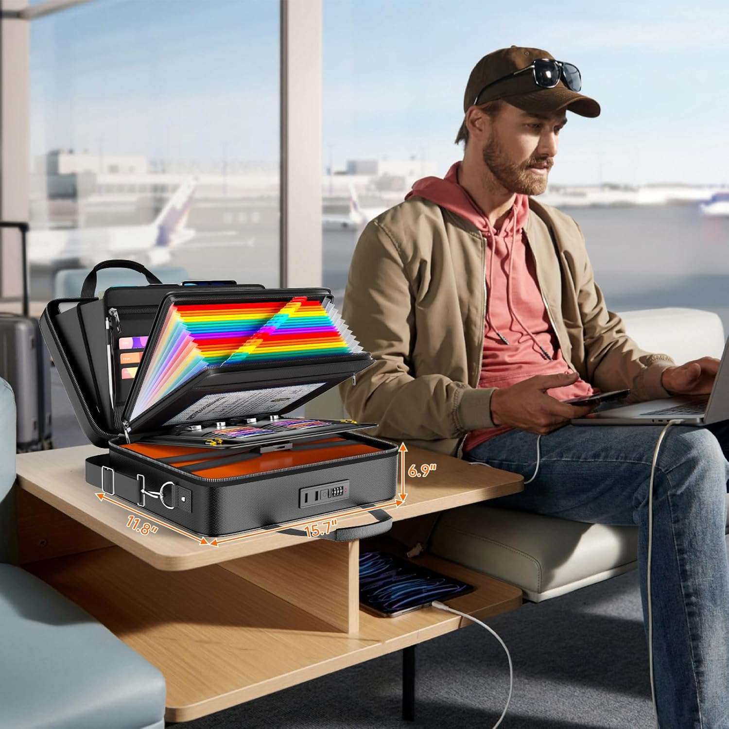 - [Large Capacity Fireproof Safe Box]: This fireproof document organizer measures approximately 15.7 x 11.8x 6.9inches. Its thoughtfully designed interior includes 2 main compartments, a 24 removable accordion file folder, 22 card slots, 2 zipper mesh bags, 4 pen slot, 2 pen clips, 8 usb mesh pockets. The generous space easily holds and keeps organized essential items such as A4/letter/legal files, laptops, passports, currency, certificates, USB drives, and cards