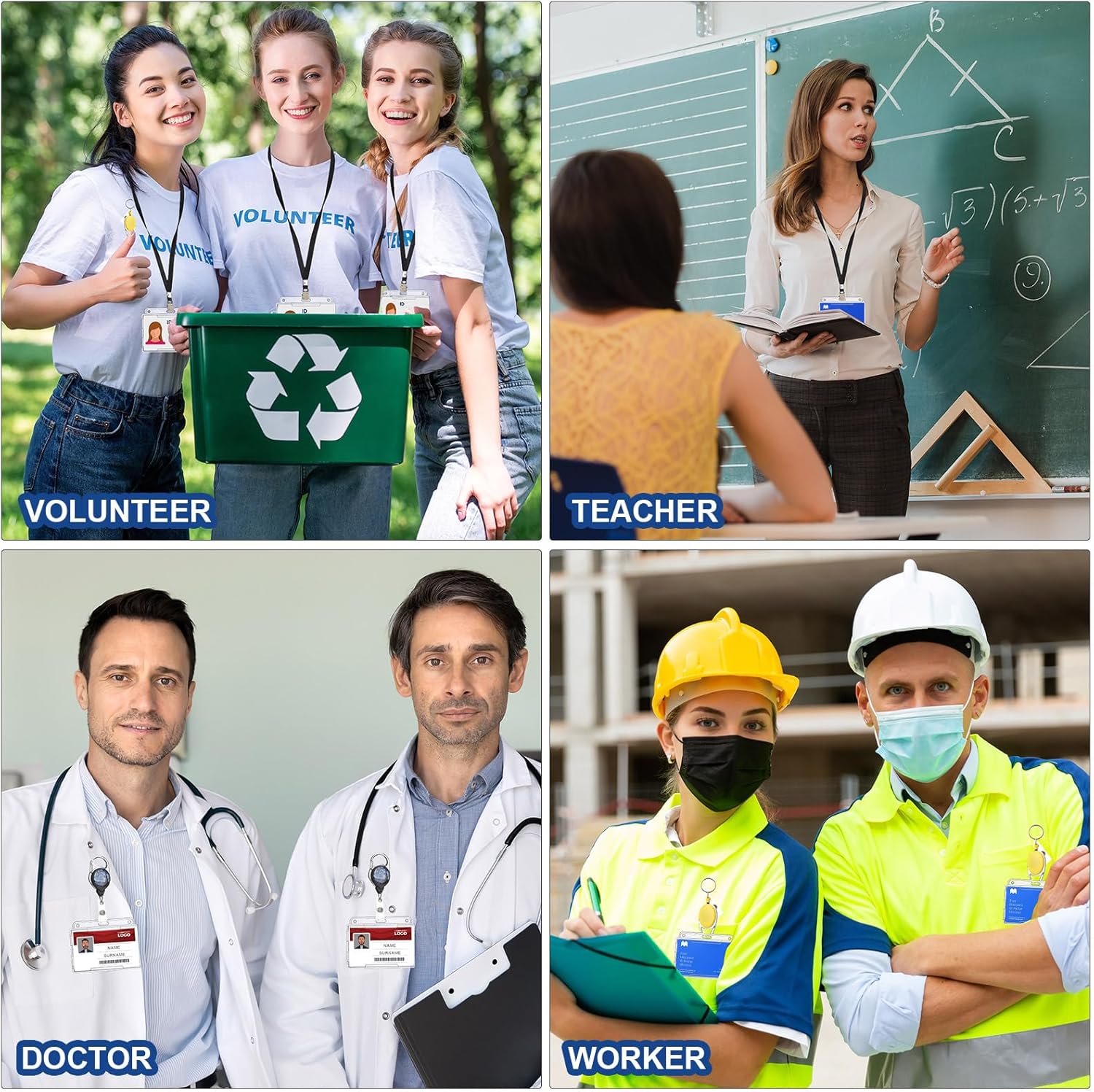 - Reliable material: transparent polycarbonate material, reliable and not easy to break; Built solid and sturdy for daily use; The horizontal ID badge holder is clear; You can see the card clearly; The full sleeve back side guards the card and photo from scratching or wear and tear, can be applied for a long time